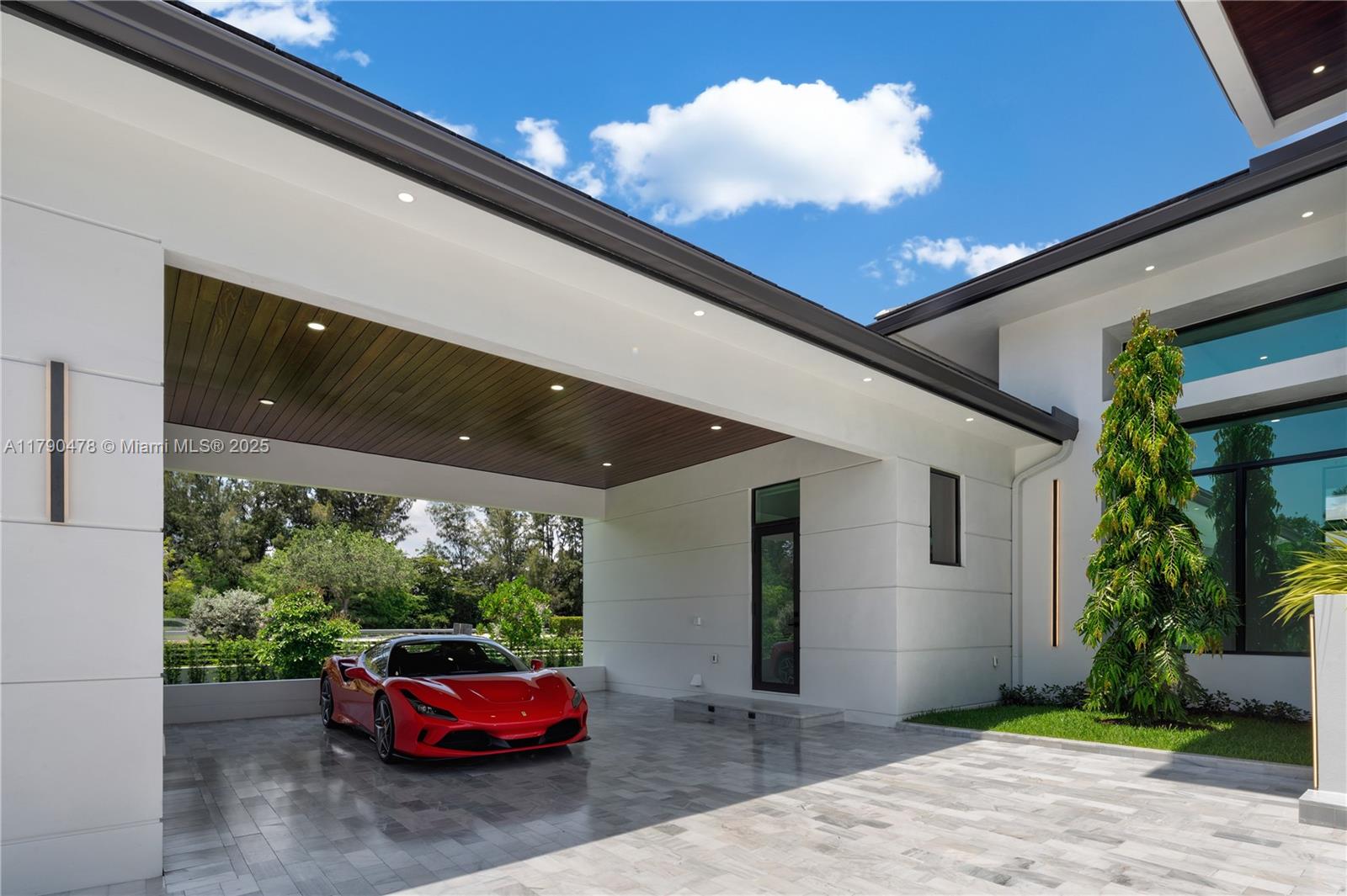 Modern residence in Plantation, FL: contemporary luxury on a private 1.1-acre lot. 5,599 sq ft climate-controlled. A 27-ft porch, 10-ft door, high ceilings, marble floors. 4 bedrooms, including primary suite with spacious closets and expansive shower. Italian-designed kitchen with 7x11 island and THERMADOR appliances. Includes a fully equipped movie theatre, sound system SONOS interior & exterior, spacious office, 3-car garage, 2 covered parking and driveway for up to 6 additional cars. Outside, 48x17 pool with jacuzzi, LED lighting, waterfalls, Viking summer kitchen, and 1,000 sq ft terrace. Tech-ready smart systems and surveillance cameras. High-end design and amenities. Close to AHS school, Supermarket, gas station, Major intersections and highway.