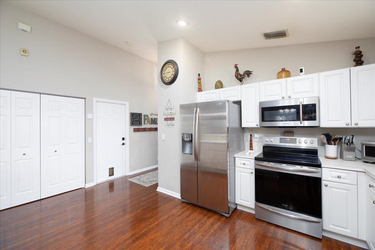 Beautiful 3/2/2 + DEN in River Forest with community boat ramp access to the OCEAN! Efficient, Storm Resistant solid Royall Wall construction. The calming, soothing colors will envelope you in serenity. Gorgeous Wood Laminate flooring throughout. Wide open floor plan with Kitchen Island overlooking dining area and living room. High vaulted ceiling. Primary bedroom features ensuite bath with dual vanities, soaking tub. and separate shower. Screened in patio to relax with your morning coffee, or unwind at the end of the day. Community amenities include playground with 1/2 court basketball and kids' playground equipment, Clubhouse, Entertaining Kitchen and huge pool. Great location away from the hustle and bustle, yet just a few miles to restaurants and shopping and I-95.