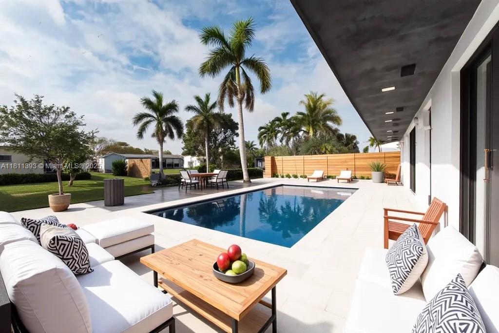 2025 Modern Curated 5 Bedrooms 2 Lavatories. Unique entry Polished concrete and synthetic glass inlay half moon approach. Brand new roof and custom bronze color impact windows. Salt water Emerald BALI inspired pool Plasture and RGB LED underwater light. Sunbathe or lounge on your Authentic Imported Brazilian IPE hardwood asymmetrical inlaid deck surrounded by authentic white quartz stone pavers and asymmetrical grass inlay.
