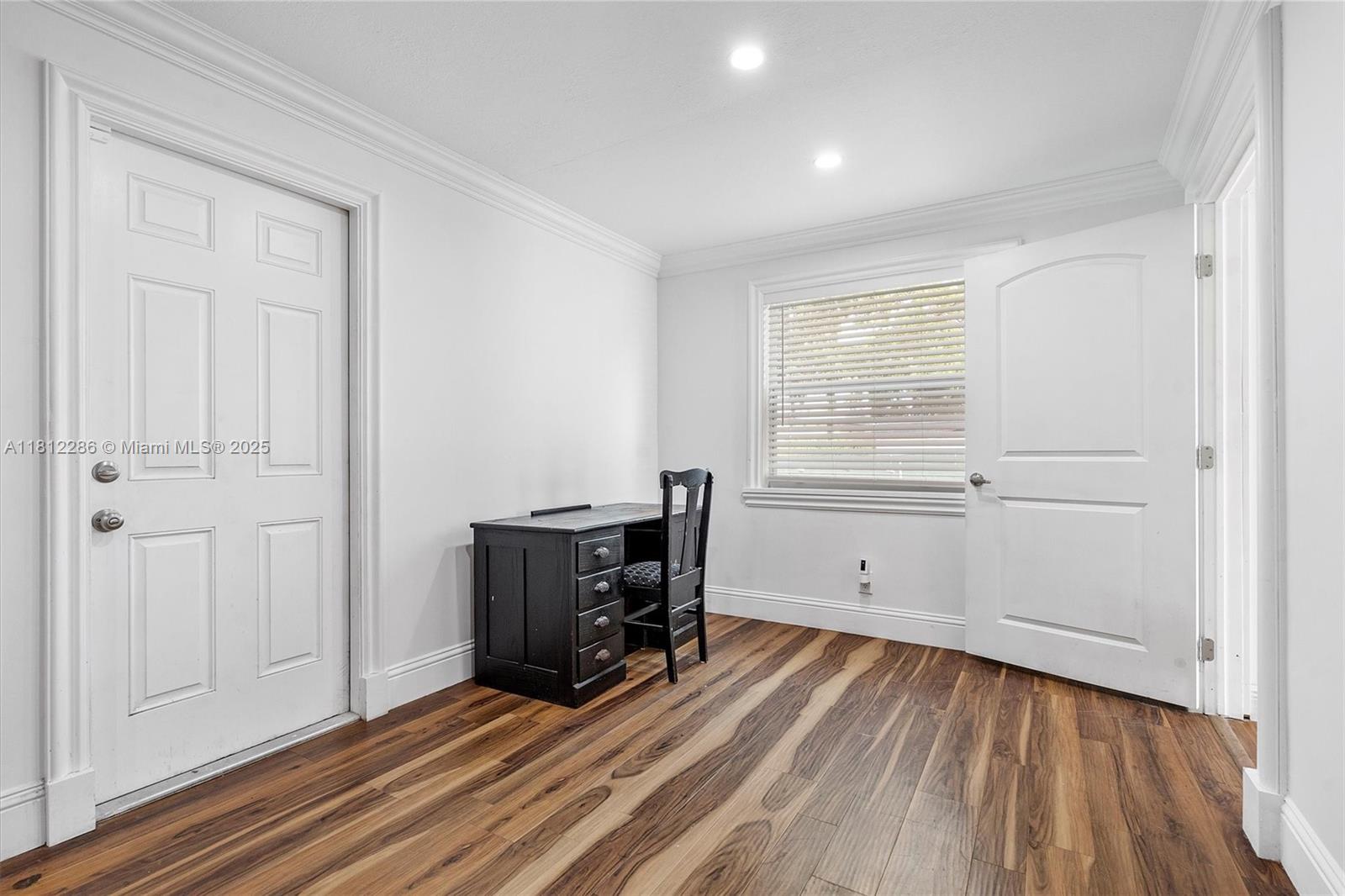 SINGLE FAMILY HOME IN HOLLYWOOD - Recently updated kitchen with gas stove, high-end countertops, and cabinets. Renovated bathroom. Features include laminate wood flooring throughout, crown molding, and impact windows. No popcorn ceiling! The spacious layout features both a family room and a living room. Fully fenced yard provides privacy and includes a large workshop. Central location with convenient access to local amenities and major roads. Functional updates throughout. Located in an established Hollywood neighborhood with easy commute options. Ready for occupancy. Contact for viewing.