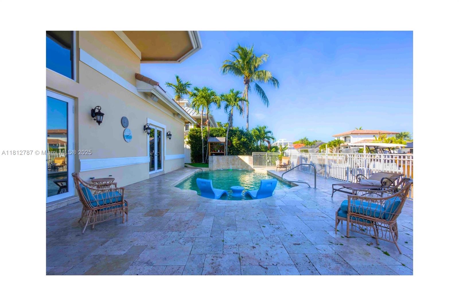 Experience water front luxury in Venetian Isles with this 4-bed, 3.5-bath custom home offering 90 ft of deepwater frontage with direct ocean access and no fixed bridges. Enjoy breathtaking sunrises and sunsets from the heated saline pool or through expansive impact windows. The interior boasts two primary suites, a loft/office, and an oversized attic for storage. The gourmet kitchen features high-end appliances and flows into open living spaces with a hidden Sub-Zero bar for entertaining. The composite dock includes water, electricity, and an ice maker, plus a 20,000-pound boat lift. Additional features: 3 A/C units, 500-gallon propane tank, and whole-home generator.