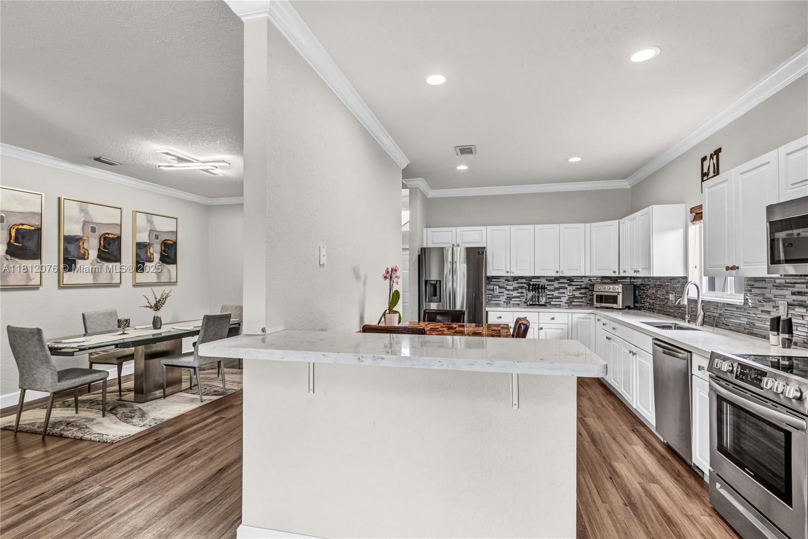 Beautiful home, 3 bedrooms, 2 bathrooms, open floor plan bright and spacious with an amazing lake view. Remodeled throughout the entire house, wood Kitchen cabinets with quartz counter top, newer appliances, eat-in kitchen area, new laminate flooring throughout the home, crown molding, stunning master bathroom with separate tub and oversized shower, split bedrooms, shower in second bath, thousands of $$$ in upgrades, screened patio overlooking beautiful lake, a/c unit 8 years old, barrel roof, one car garage and two car driveway. The Pointe Community offers a community pool for your enjoyment, no age restrictions, and great school district. Perfect location near shopping plazas, parks, hospitals and highways all within minutes....Location, Location!*Water Filter/softerner not included*