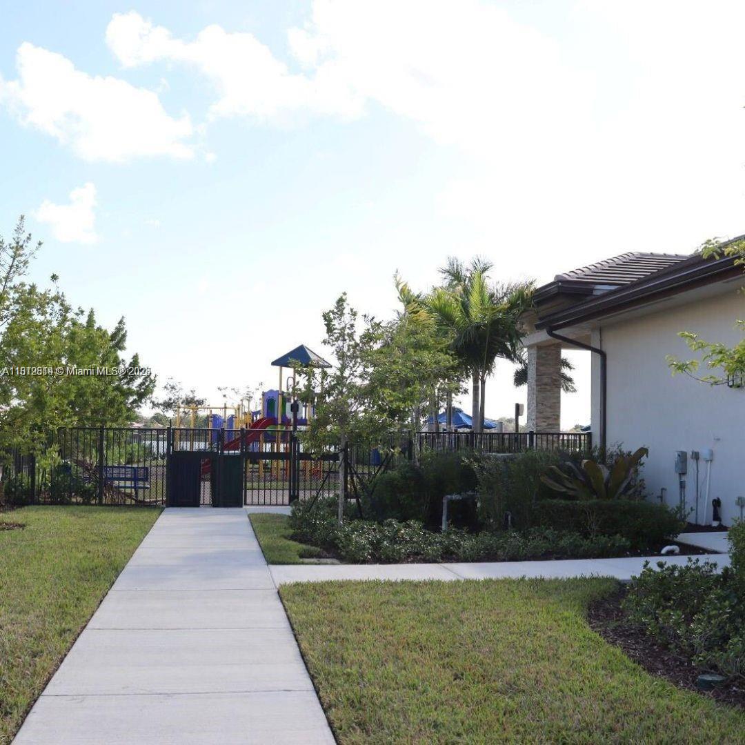 Corner Townhouse in a gated community, 3 beds and 3 baths and a modern open-floor concept. Step into the inviting eat-in kitchen with granite countertops, SS appliances, and ample storage space. The kitchen's centerpiece is a large center island. The living room is flooded with natural light, and from the dining room, access the private patio, a tranquil oasis for enjoying the fresh air. The 1st floor features a versatile bed or office space with an adjacent full bath. The 2nd floor hosts 2 beds, each with its own full bath, and the laundry area features convenient washer and dryer units. 2 assigned parking + guest parking. Community amenities: pool, Gym, BBQ, playground, just 3 milas from Aventura Mall.