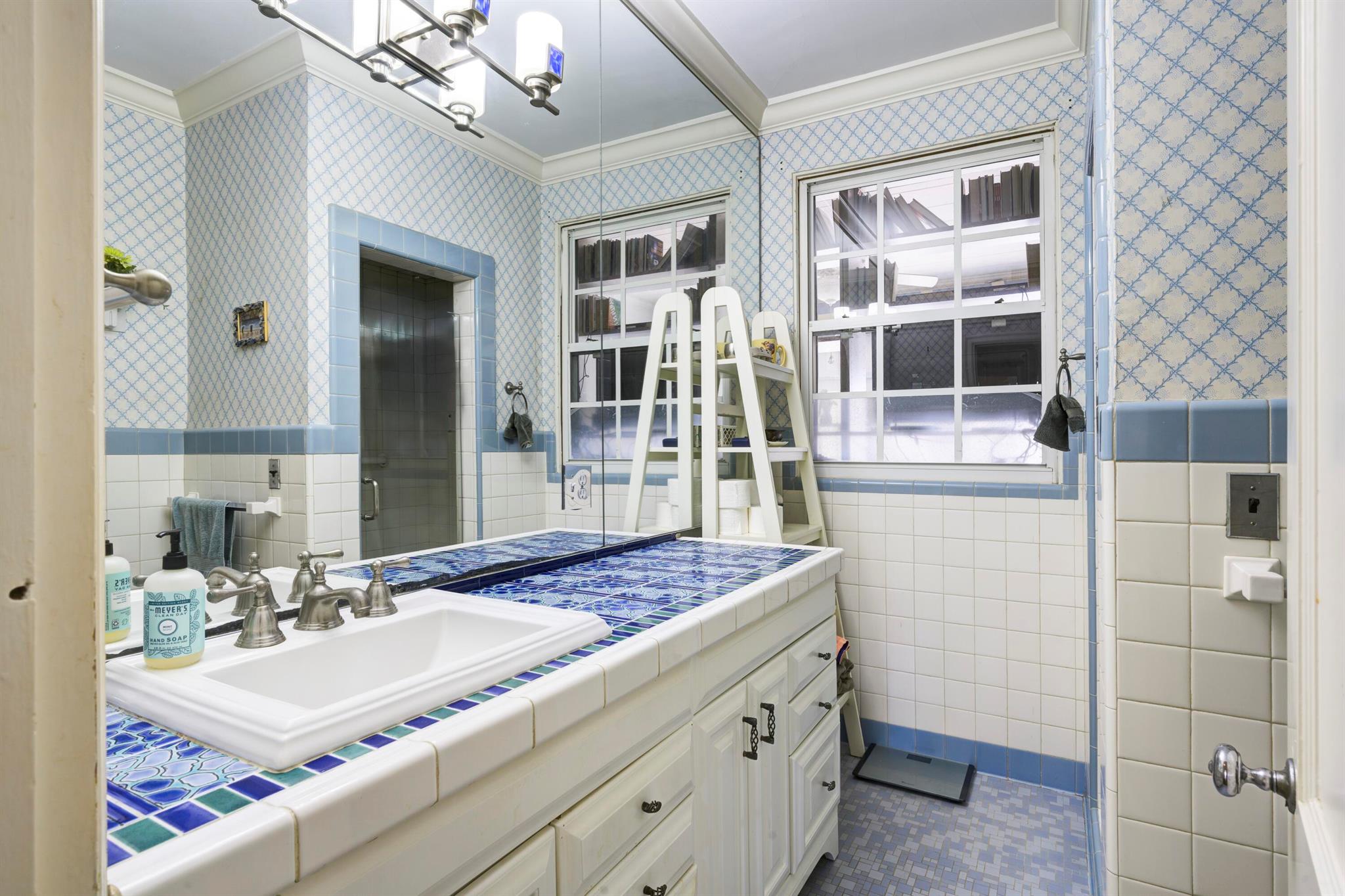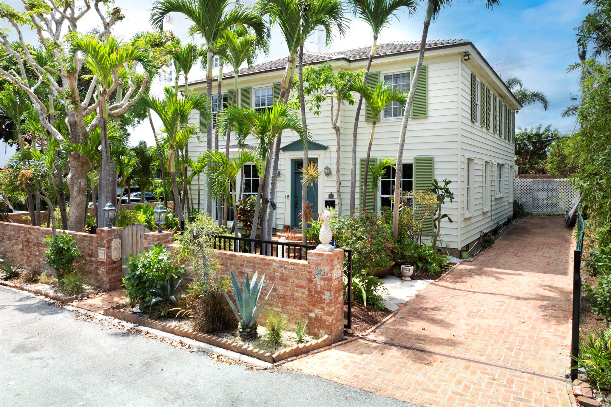 Timeless charm meets comfortable elegance in the heart of West Palm Beach. This Georgetown-style two-story pool residence blends timeless character with thoughtful upgrades, creating the perfect setting for relaxed living and effortless entertaining.Inside, Miami Dade Pine hardwood floors, elegant crown molding, and soaring 9-foot smooth ceilings set the tone. Custom built-ins offer both beauty and function throughout. Gather in the formal living room around the decorative fireplace or take in garden views from the bay window and adjacent home office. First floor features bedroom with wall-to-wall built-in shelving and pool view. Full downstairs bath with counter height vanity, tiled countertops imported from Bali, and a walk-in shower with glass doors and tiled flooring.