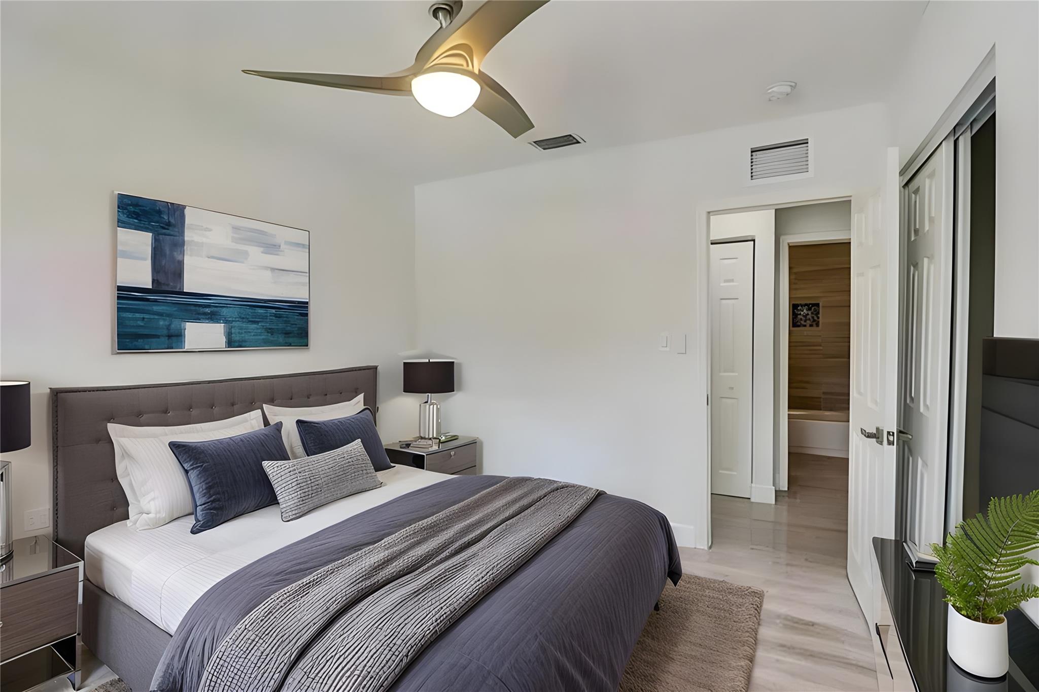 This is a Beautiful, completely remodeled turnkey home featuring energy-efficient impact windows and doors, luxurious tile floors, and a spacious master suite with two walk-in closets, a rain shower, and double vanities. The eat-in kitchen is equipped with new stainless steel appliances, ice quartz countertops, and recessed lighting. Large backyard offers room for a pool, playground, or mother-in- law suite. Bonus features: Circular driveway, new roof, new A/C with UV light, new sprinkler system, and extra storage space.