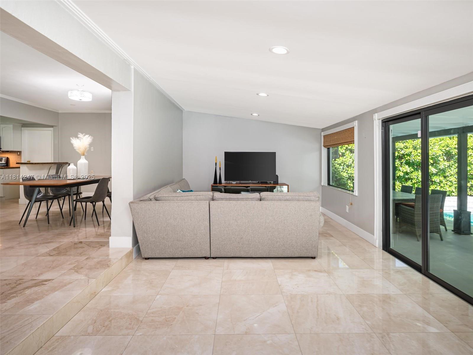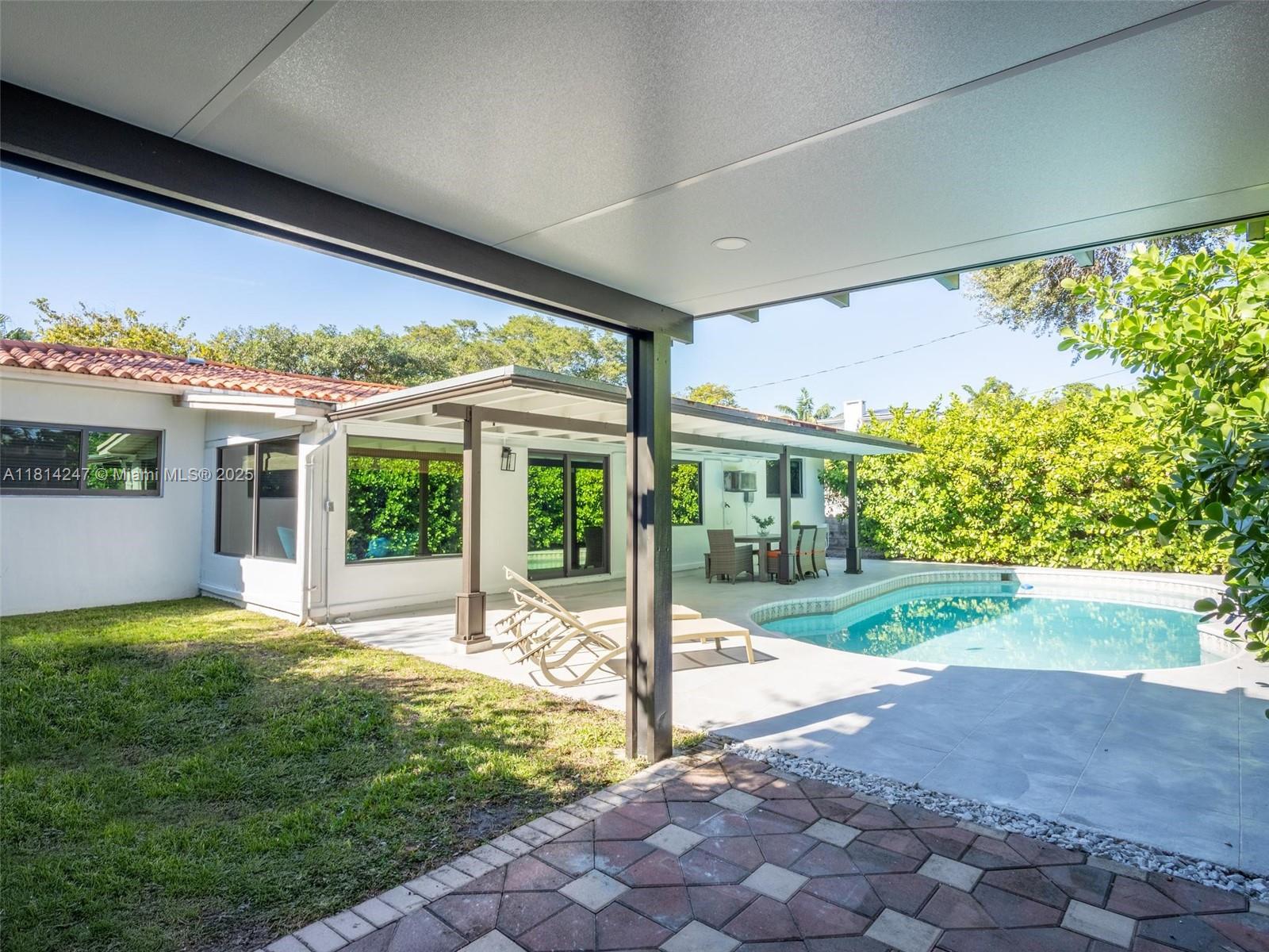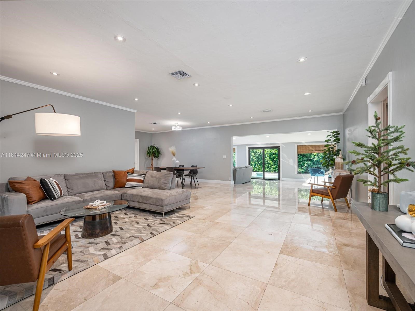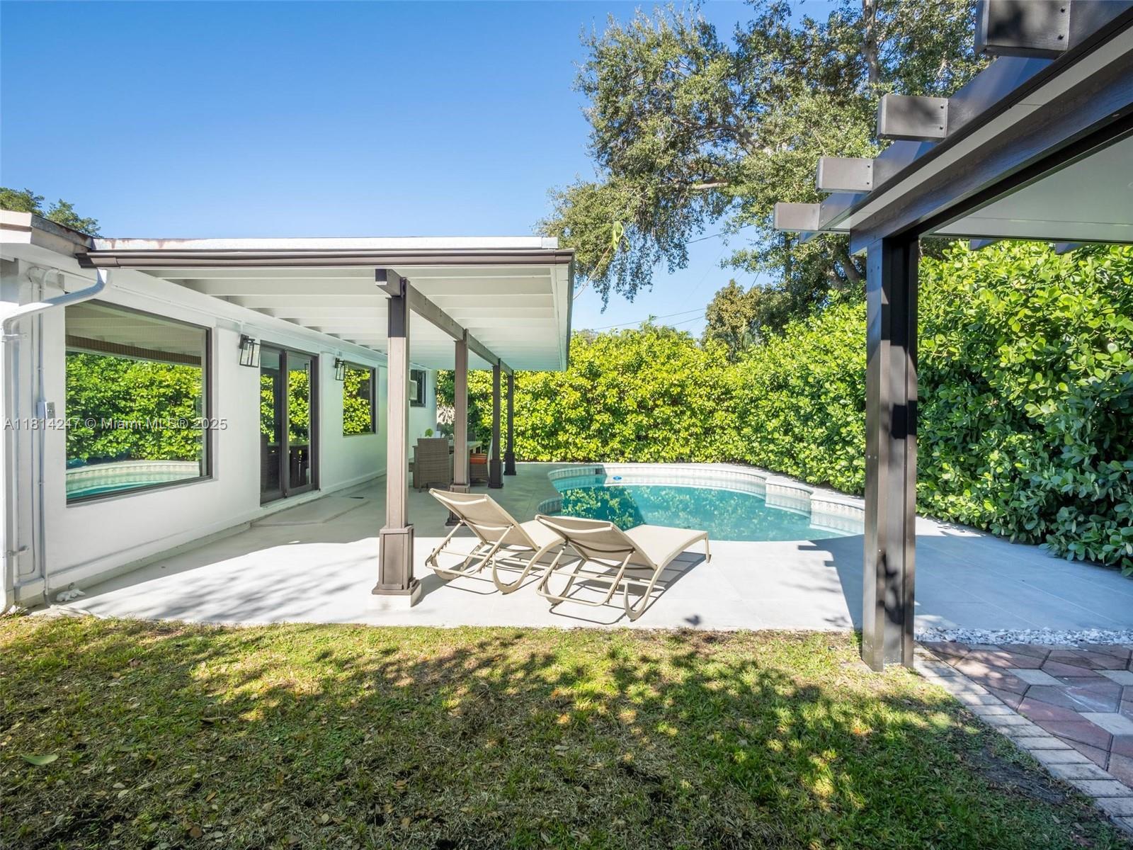 **Brand new roof currently being installed**. Tucked away on a peaceful cul-de-sac and nestled alongside a Banyan tree park, this beautifully renovated home offers a serene escape. Enjoy 24" crema marfil marble floors throughout, a stainless and granite kitchen, and travertine bathrooms. The open concept design fills the space with natural light, while the master bedroom features a spacious walk-in closet. Step outside to a tropical paradise with a lush landscaping, a sparkling pool, and a pergola perfect for entertaining: Roof (2025) Covered deck, pergola and exterior paint (2023), water heater (2020), AC Duct replacement/Air Purifier (2021), master bath renovation (2024), Impact windows and garaje door (2020). No HOA.