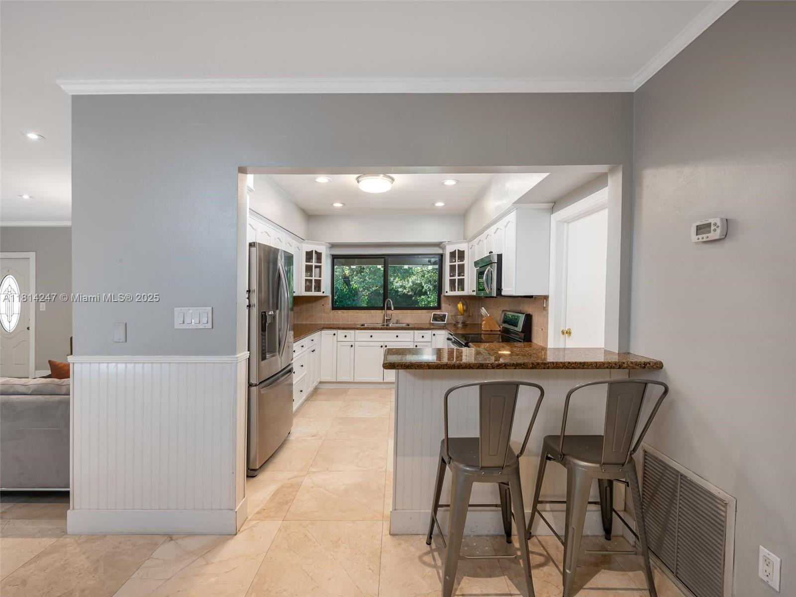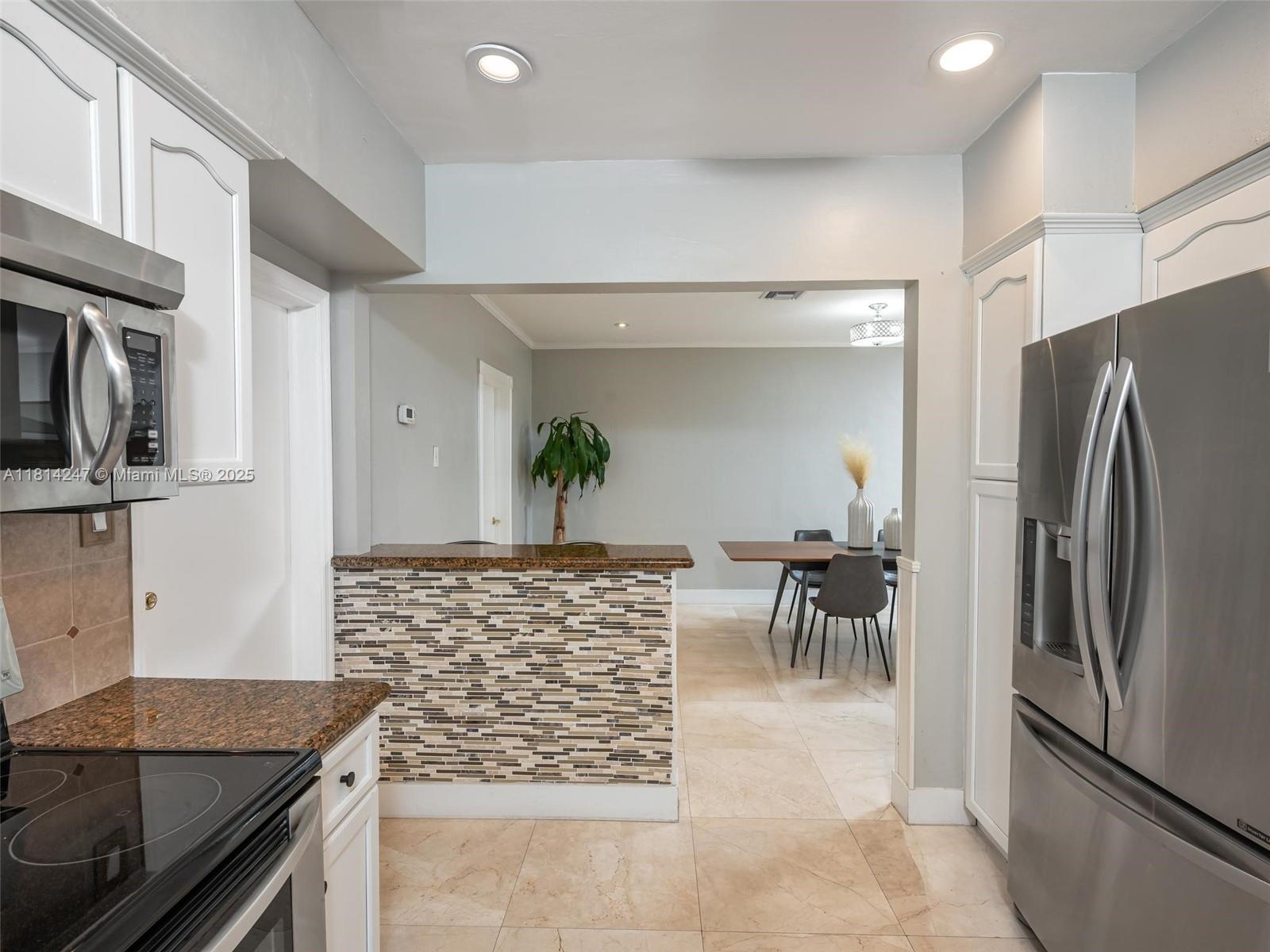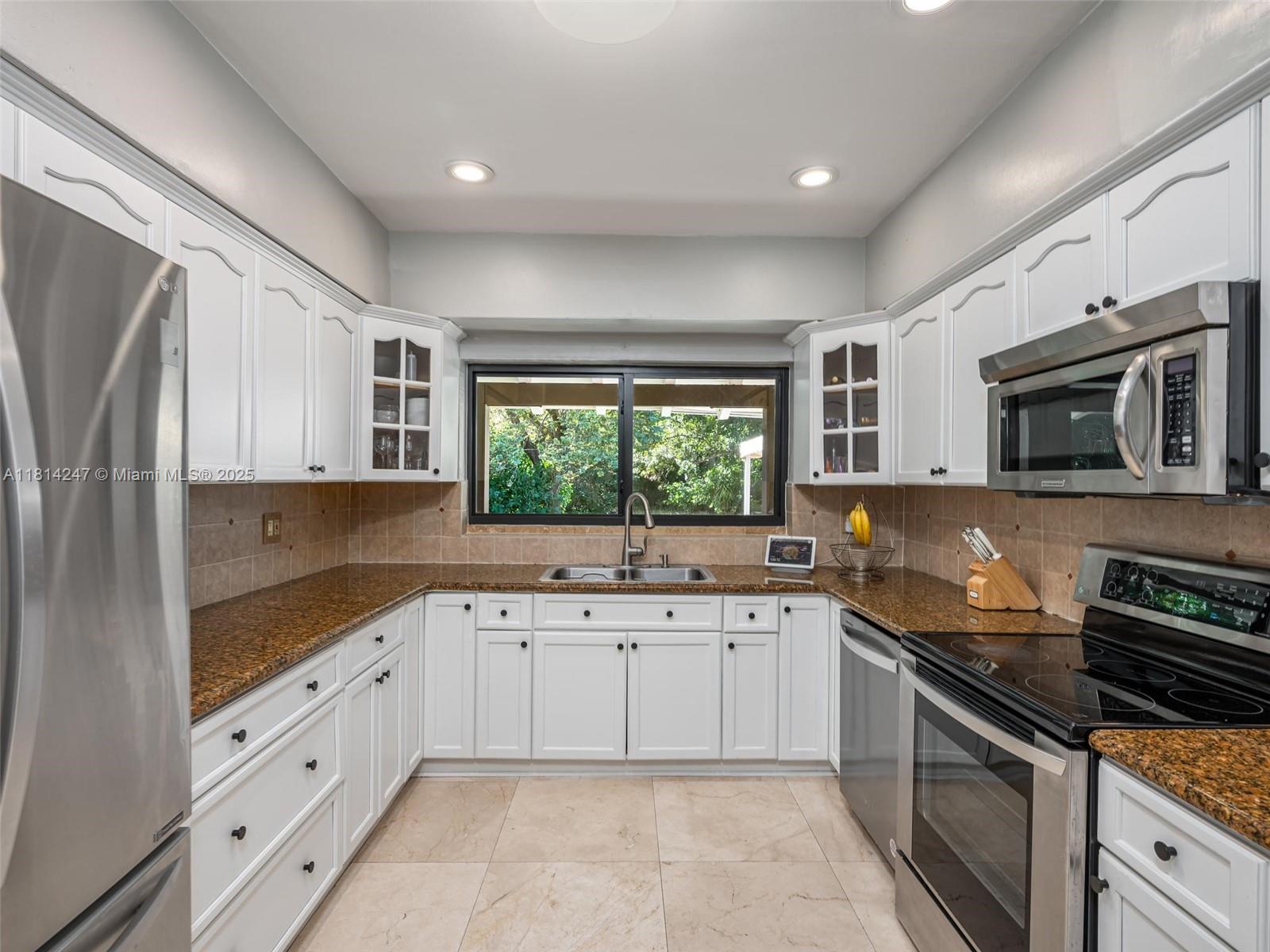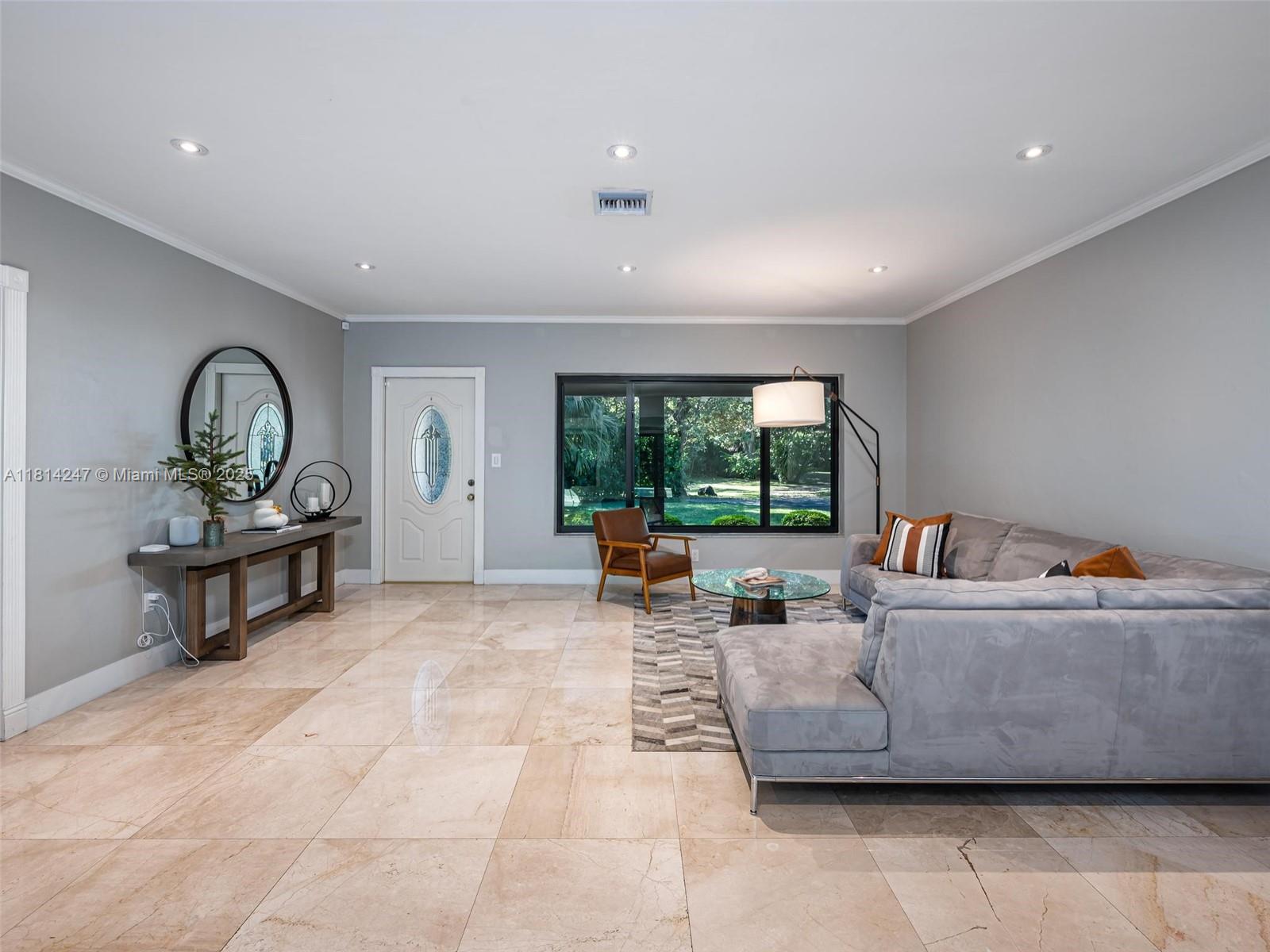 **Brand new roof currently being installed**. Tucked away on a peaceful cul-de-sac and nestled alongside a Banyan tree park, this beautifully renovated home offers a serene escape. Enjoy 24" crema marfil marble floors throughout, a stainless and granite kitchen, and travertine bathrooms. The open concept design fills the space with natural light, while the master bedroom features a spacious walk-in closet. Step outside to a tropical paradise with a lush landscaping, a sparkling pool, and a pergola perfect for entertaining: Roof (2025) Covered deck, pergola and exterior paint (2023), water heater (2020), AC Duct replacement/Air Purifier (2021), master bath renovation (2024), Impact windows and garaje door (2020). No HOA.