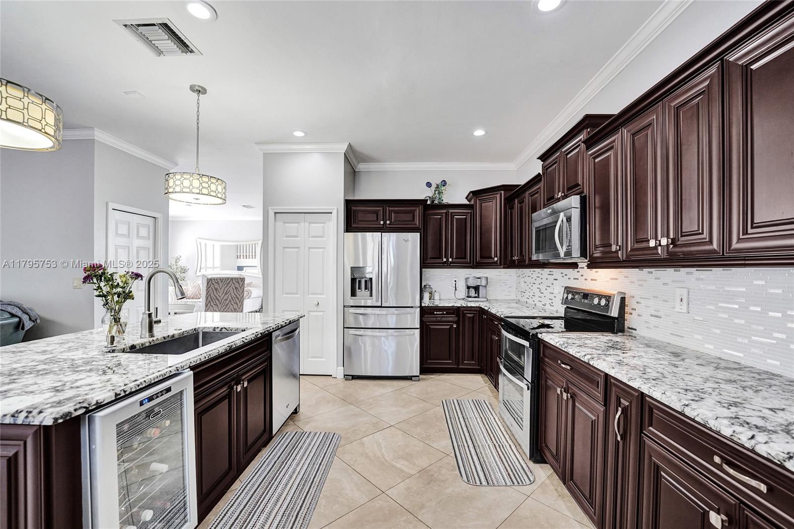 BEAUTIFUL AND SPACIOUS 4 BEDROOM 2 1/2 BATH HOME IN DESIRABLE SILVER SHORES. NICELY LANDSCAPED WITH ACCORDION SHUTTERS. CROWN MOLDINGS AND AMAZING PLANTATION SHUTTERS THROUGHOUT. UPGRADED PORCELAIN TILE ON 1ST FLOOR & LAMINATE WOOD FLOORS ON STAIRS AND 2ND FLOOR. UPGRADED LIGHT FIXTURES AND CABINETS THROUGHOUT. NEW ENERGY EFFICIENT A/C, AND WATER HEATER. NEW STAINLESS STEEL DISHWASHER, FRIDGE AND DRYER. FRONT LOADING HIGH CAPACITY WASHER AND DRYER. NICE FENCED IN BACK PATIO W/ GARDEN AND SPRINKLER SYSTEM.