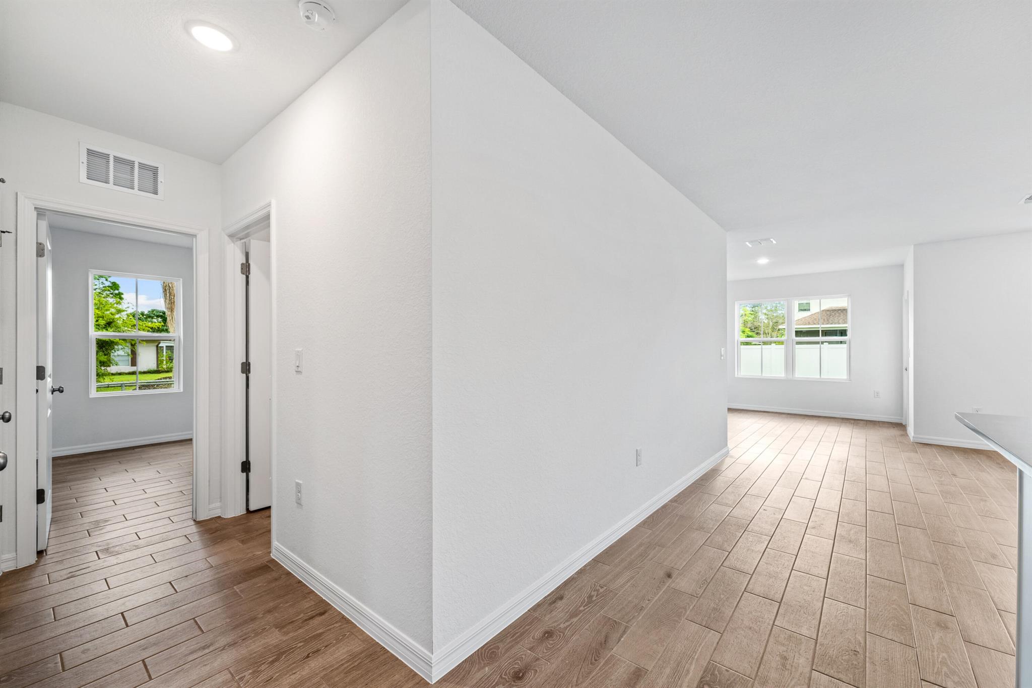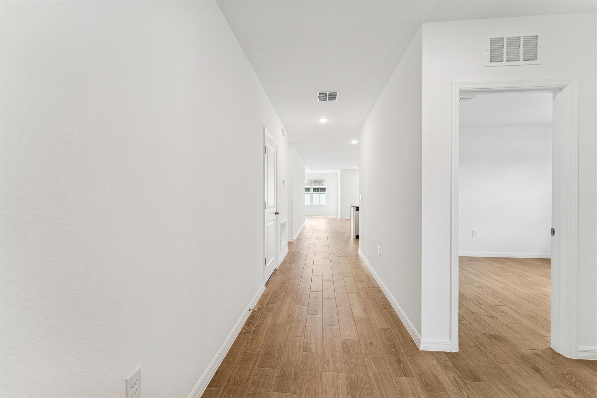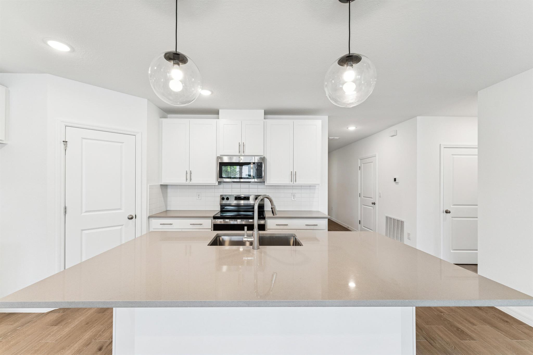 Stylish and Smart Living in the Goldenrod II - No HOA! This home's backyard will be fully fenced in with gate!Discover effortless style and modern convenience in the Goldenrod II, crafted with a fresh, Loft-inspired design. The open-concept kitchen is a showstopper, featuring crisp Aristokraft White cabinets, paired with a bold Meridian Grey quartz island. Accented by floating shelves and chic pendant lights, this kitchen is built for both form and function, complete with GE stainless steel appliances.A spacious dining area flows naturally to a covered patio, creating the perfect setup for indoor-outdoor entertaining. The secluded primary suite offers comfort and privacy, with a well-designed walk-in closet and a sleek bathroom finished with polished chrome fixtures.
