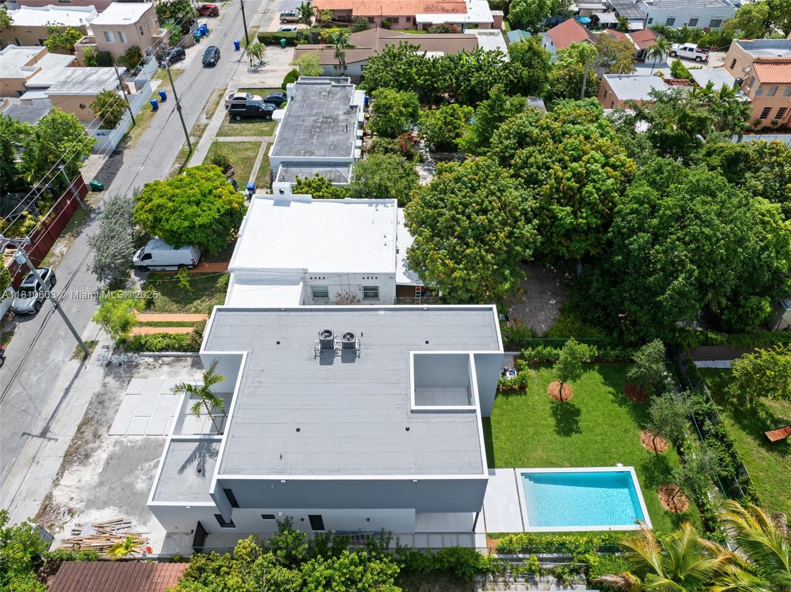 Brand-new 4-bed, 5-bath architectural masterpiece in Miami’s coveted Shenandoah. This all-concrete construction offers unmatched durability, soundproofing, and modern elegance with flat concrete roof, concrete floors between levels, concrete stairs and hurricane impact windows and doors Enjoy 3,528 sq. ft. of A/C space (4,372 sq. ft. total). Built in 2025 with 9'–9'6" ceilings, the home features a gourmet kitchen with custom Italian cabinetry and Monogram appliances, plus a second family room / den upstairs. Step outside to a private pool, expansive covered terrace, and an open-air second-floor terrace —perfect for sunsets and entertaining. Just minutes from Miami’s top dining, shopping, and cultural hotspots.