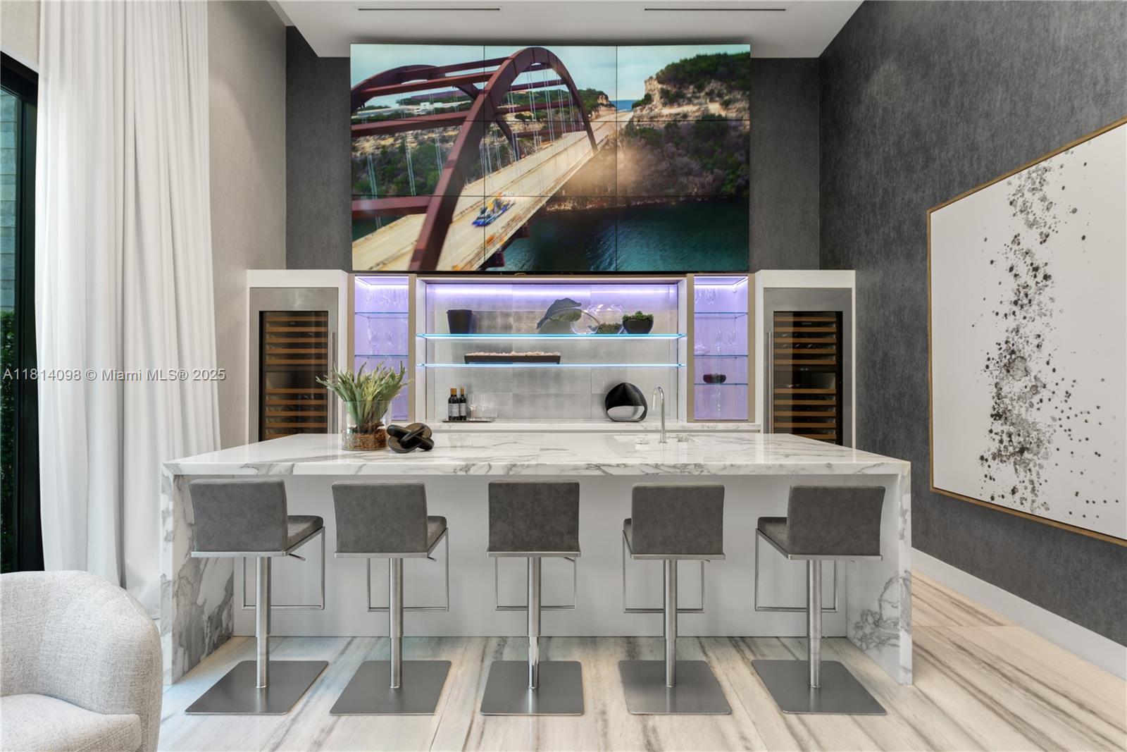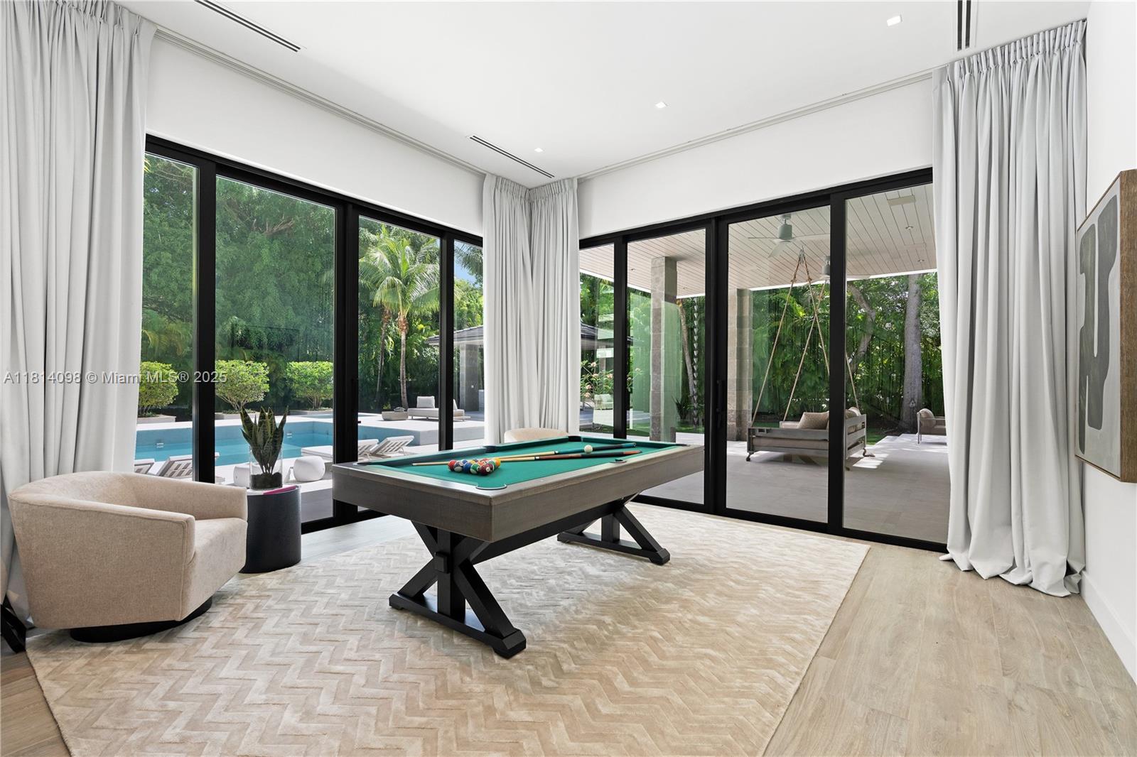 Custom N. Pinecrest 2019 build, that exudes modern style, family functionality and a lounge that is sure to impress any sports enthusiast. Sitting on an acre+, drive thru the gated entry and be greeted to fire and water features. Stunning open floor plan that showcases the Officine Gullo kitchen, walk-in pantry and wall-to-wall glass to overlook your own tropical paradise backyard. Pool/Spa and covered terraces with summer kitchen. 4 Bedrooms upstairs, each connecting to its own sitting area on the first level. Luxe primary suite w/boutique closet, spa bath, floating tub, and 16-ft shower. Home theatre with comfy recliners and wet bar, Sports Lounge with 9-screens and full bar, Elevator, maid’s ste, generator, 3-car gar. This home has it all, and is located near the top schools in Miami.