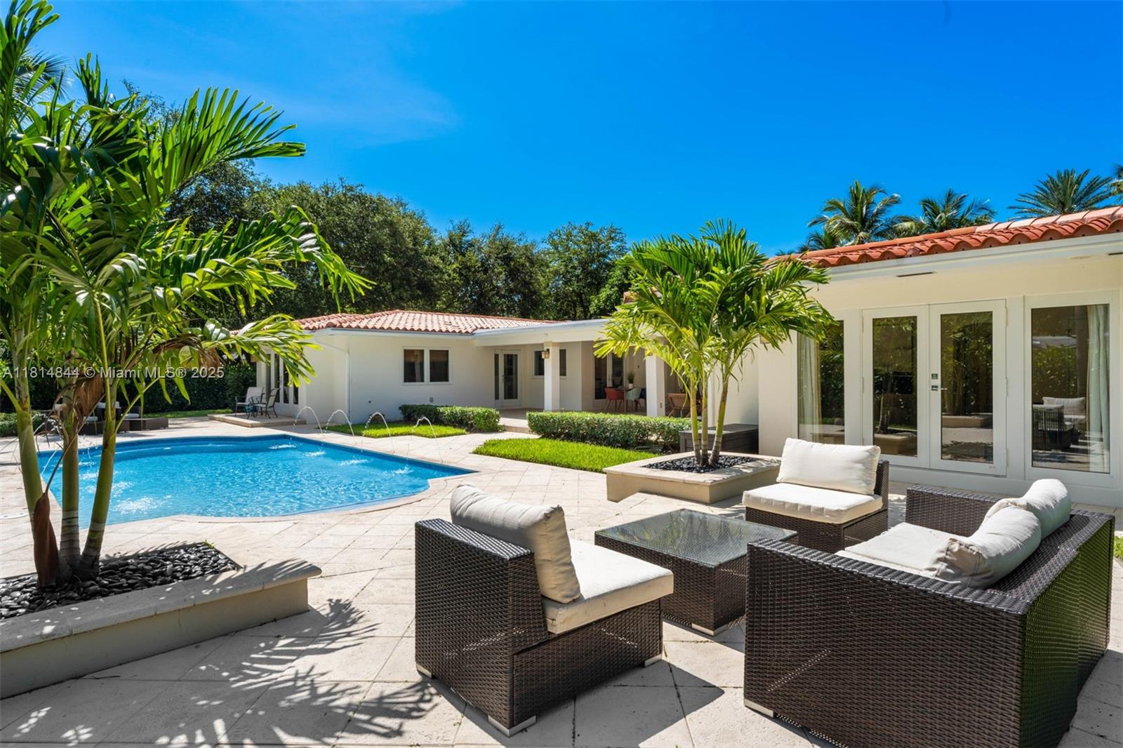 Elevated elegance and refined function come together in this re-listed gem, a California Bungalow designed by architect Hamed Rodriguez. The grand entry sets the tone for the home’s 4,000+ Sq.Ft. of living space, seamlessly blending classic design and modern comforts. Solid wood floors lead you to an open layout featuring a home gym, integrated workspaces, and a breakfast room with a built-in banquette. The gourmet kitchen is a chef’s dream with a Wolf gas range, Subzero refrigerator, and sleek quartz countertops. French doors open to a 900-Sq.Ft. covered patio with an outdoor kitchen, perfect for alfresco living. The primary suite offers a serene retreat with a spacious sitting area and direct access to the oversized pool and landscaped yard.
