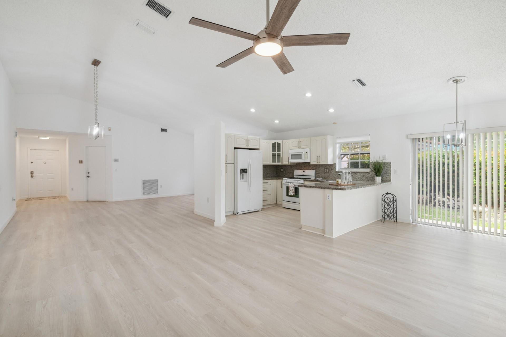 “The Gables” at Bonaventure in Weston! This charming 3BD/2BA single-family home offers beautiful curb appeal. Features new roof less than a year, long-term investment value for the buyer! Walk into an open, airy spacious floor plan bright interior | vaulted ceilings | Great water views! Home is ready for all your personal touches! Vinyl flooring throughout living areas | brushed nickel light fixtures | 5 new ceiling fans | Water Softener System. Family room slider doors open to, Patio with brand-new roof coming soon! Peaceful lake views. The Gables at Bonaventure Weston is a very well-maintained and beautifully manicured community with a low HOA. A mandatory membership of $385 a year to Bonaventure Town Center has resort-style amenities including pool, fitness center, bowling and more!