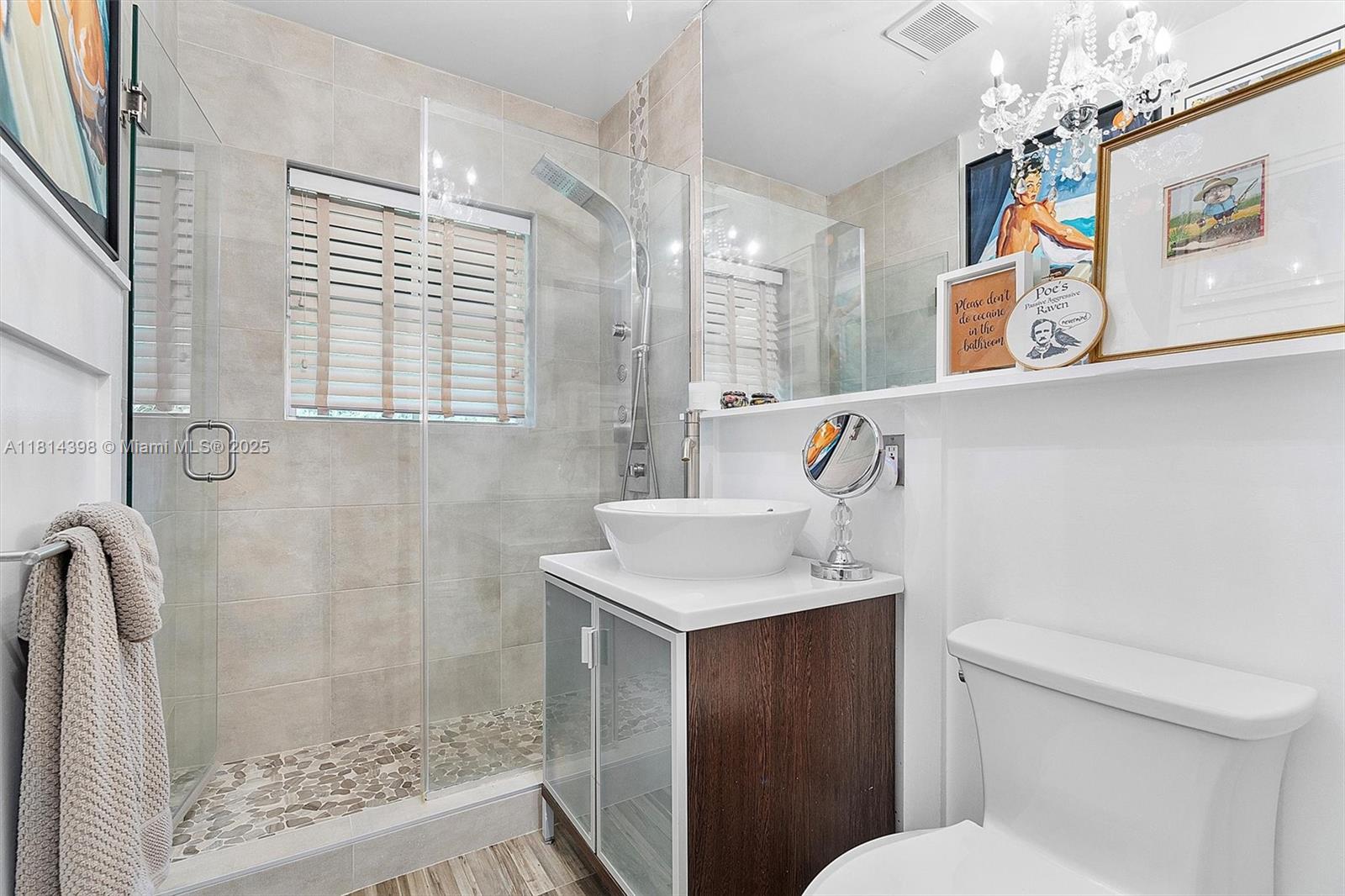 This beautifully updated home blends modern elegance with tropical charm, creating a true sanctuary. The open layout features sunlit living spaces and a gourmet island kitchen with Sub-Zero and Thermador appliances. The primary suite stuns with a glass-walled soaking tub, warm brick, and pebble stone accents. A third bedroom has been transformed into a spectacular custom closet. Enjoy three serene outdoor spaces, a separate office, impact windows/doors, newer roof, new AC, and all-new plumbing. As turnkey as it gets—just move in and exhale.