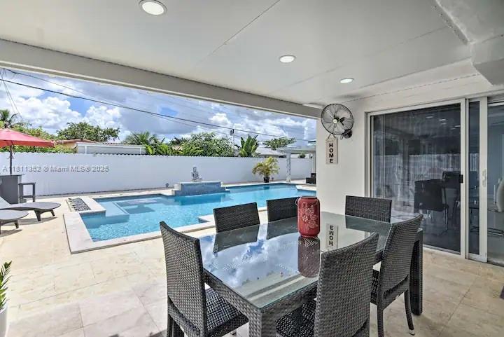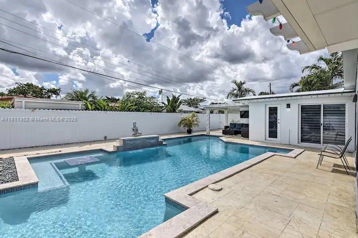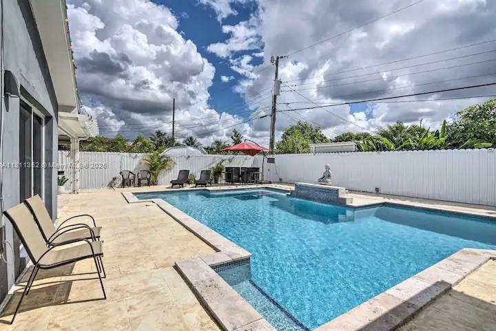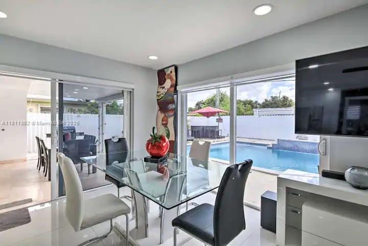 Located in a prime area of Hialeah, this impressive 6-bedroom, 4.5-bath home features a resort-style backyard. Enjoy a modern pool, outdoor summer kitchen, and covered patio-perfect for gatherings. The interior offers ceramic tile floor throughout, a renovated kitchen with stainless steel appliances, and spacious, light-filled living areas. A convenient exterior bathroom by the pool and a fully fenced yard provides plenty of space to relax or entertain. Move-in-ready!