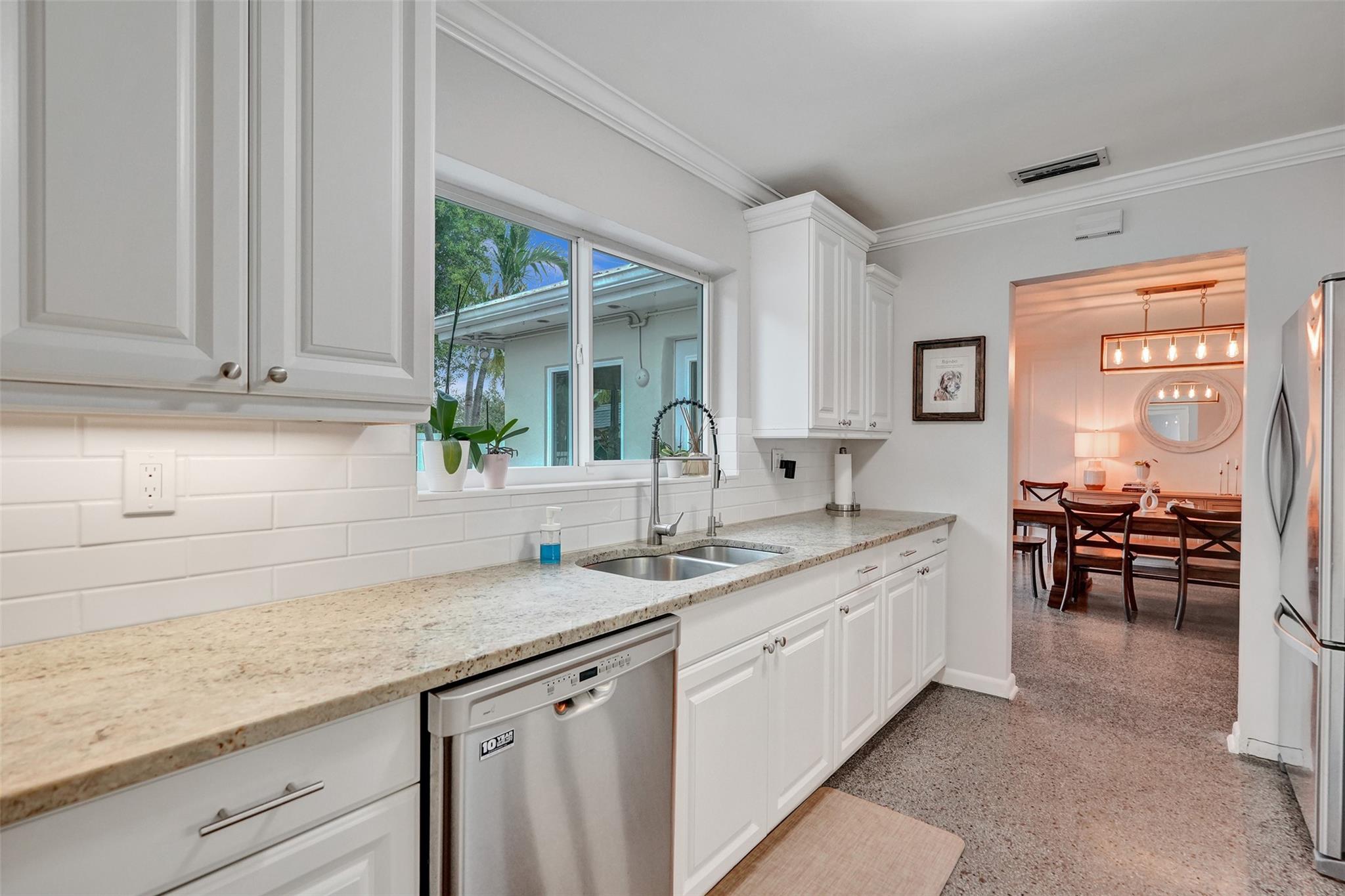 Charming 3 Bed 2 Bath home in Lyons Park neighborhood ready for you to move right in! There is so much natural light in this home. All impact windows & doors. Full home generator. Great layout with open living space leading into an inviting Sunroom. Spacious kitchen features white cabinets, cabinetry lighting, granite counters, reverse osmosis water filter and stainless appliances. Bedrooms have a split floor plan with nice sized rooms. Well-kept terrazzo floor throughout. Enjoy your dedicated laundry room/mud room! Fully fenced yard with nice greenery, sprinklers on well water and plenty of room to add a pool. Outside BBQ connected to natural gas. 1 car garage. Storage shed. Very friendly neighborhood. NO HOA. Conveniently located near the newly renovated Pompano Pier, shopping & dining.