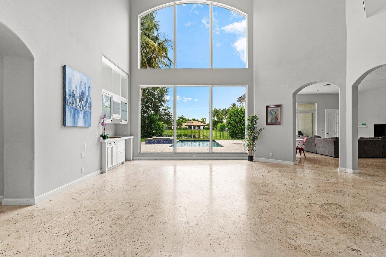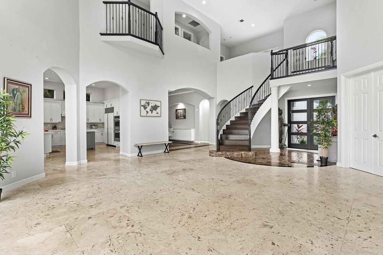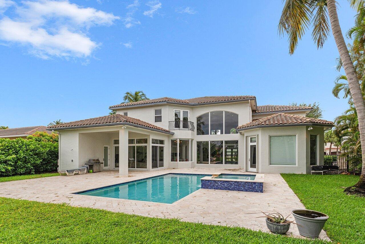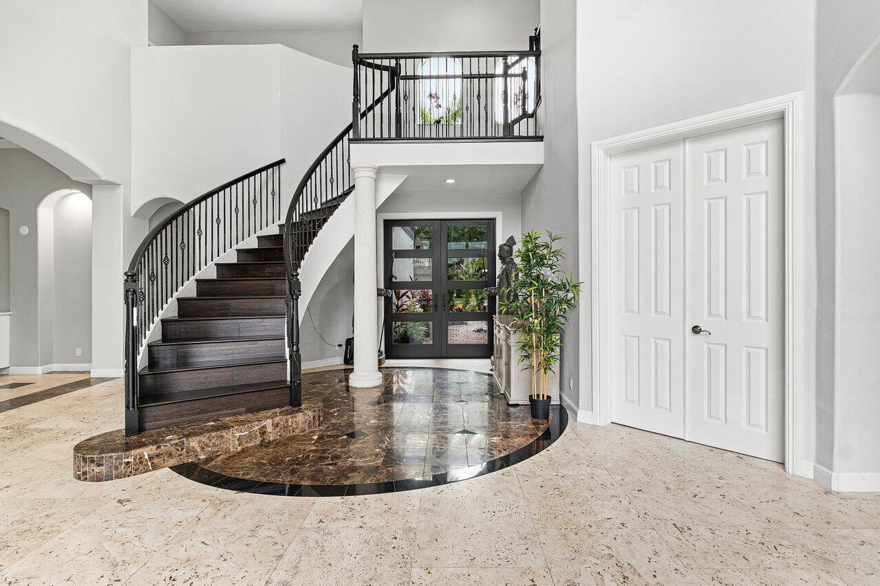 Luxurious Waterfront Estate in Mizner's PreserveWelcome to this exceptional estate, perfectly positioned on a premier cul-de-sac lot with sweeping panoramic water views and ultimate privacy. From the moment you step inside, you're greeted by soaring 30-foot ceilings, gleaming marble floors, and rich bamboo wood accents that define the home's luxurious ambiance. The grand open spaces are designed for both refined entertaining and everyday comfort.Enjoy spa-like indulgence with a serene steam shower and the peace of mind that comes with hurricane-impact windows throughout. The oversized bedrooms offer exceptional space, each providing a tranquil, retreat-like atmosphere.Step outside to your private oasis featuring a newly constructed pool, complete with a stunning jacuzzi.