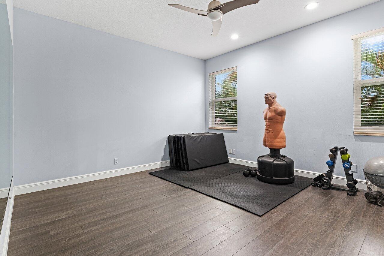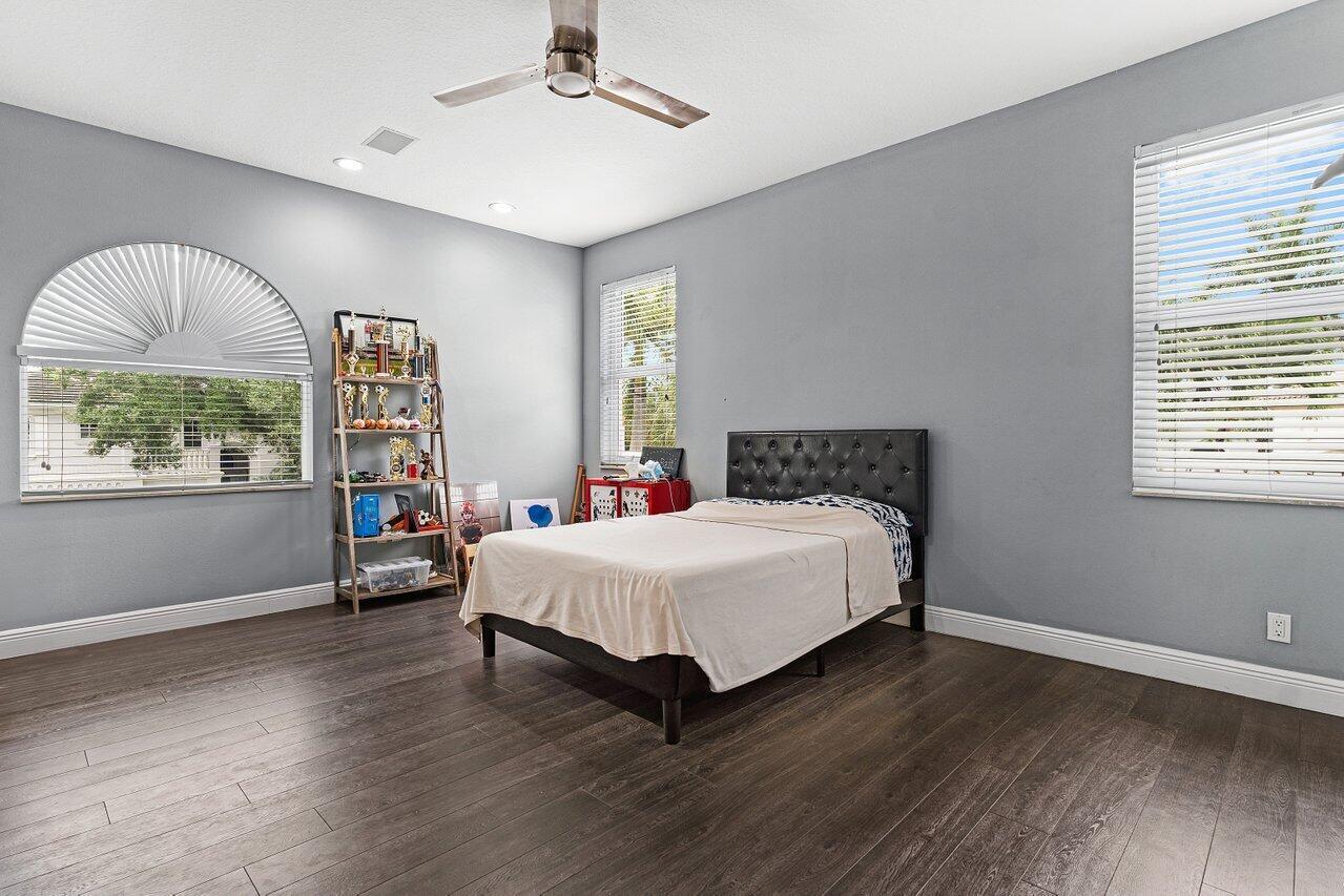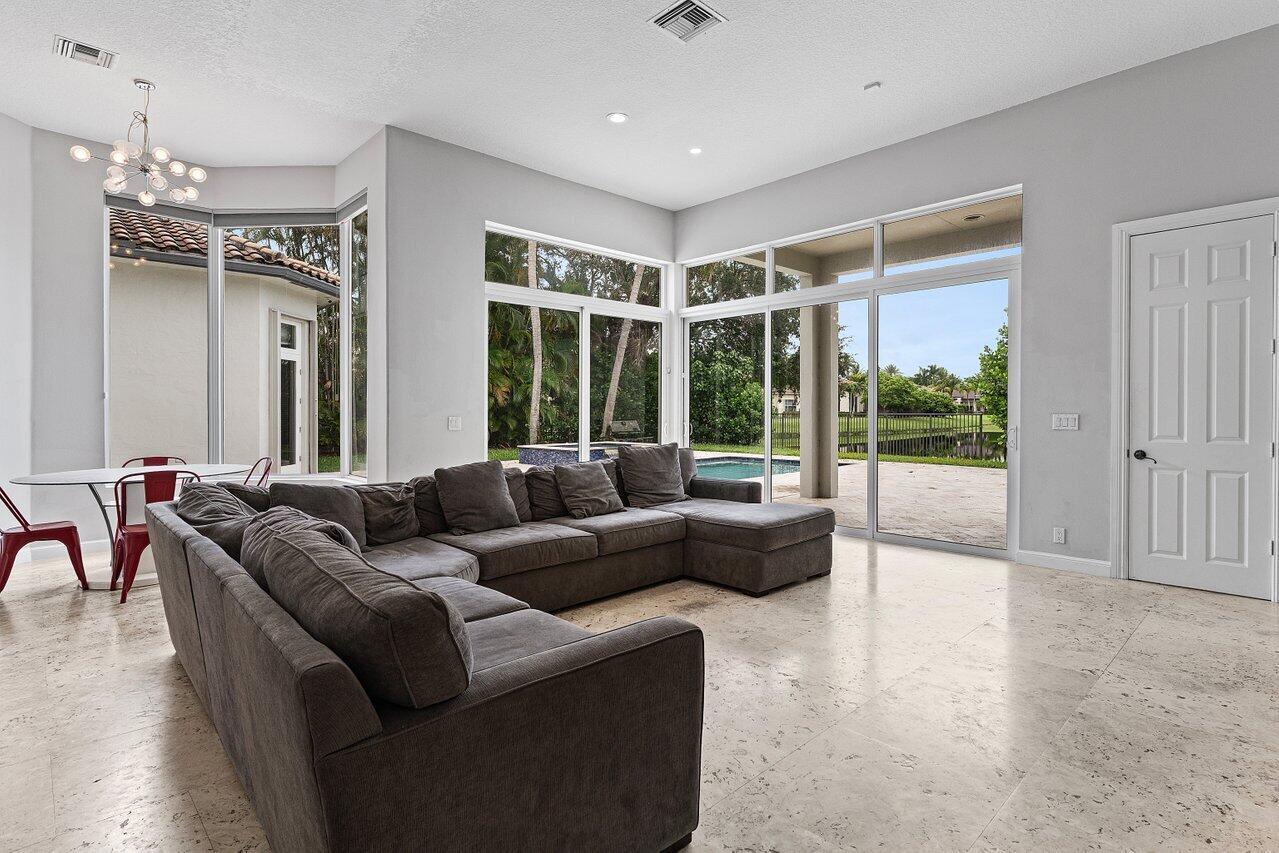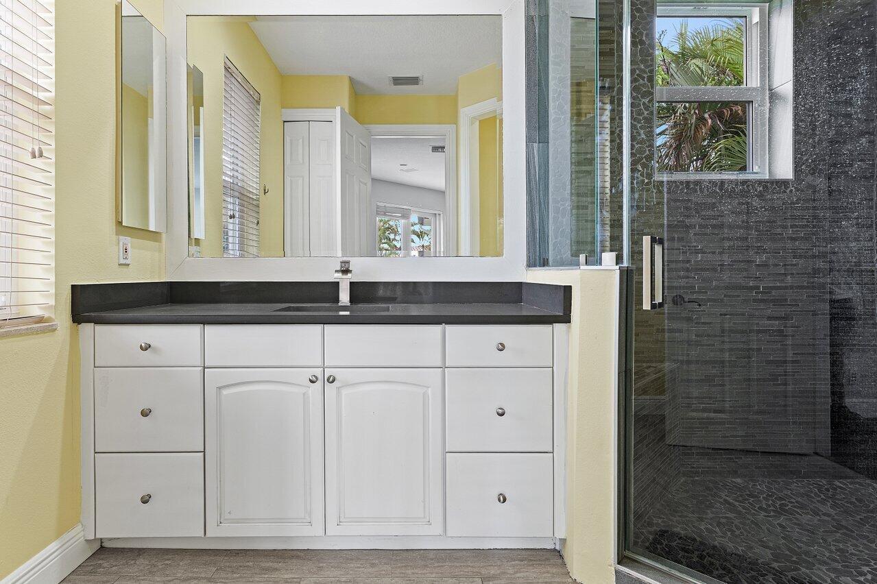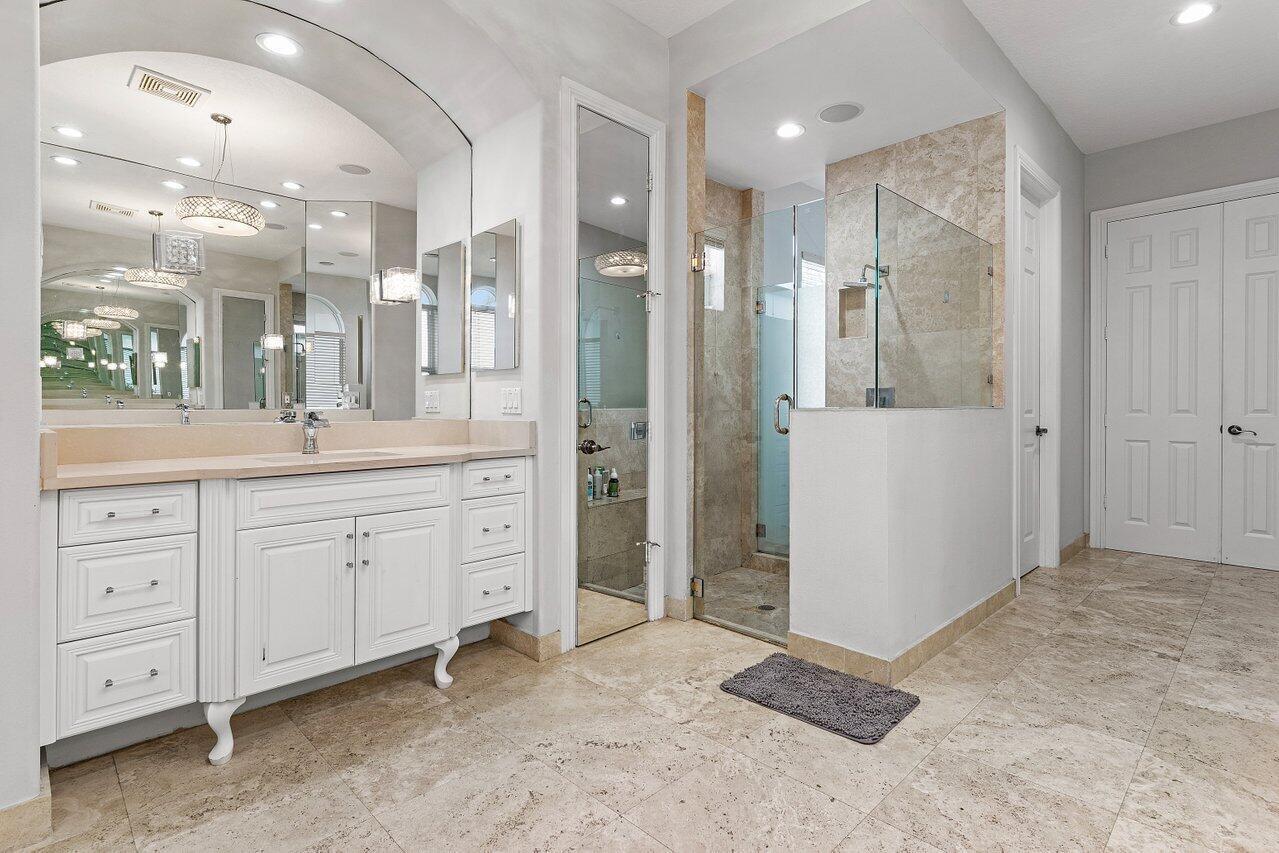 Luxurious Waterfront Estate in Mizner's PreserveWelcome to this exceptional estate, perfectly positioned on a premier cul-de-sac lot with sweeping panoramic water views and ultimate privacy. From the moment you step inside, you're greeted by soaring 30-foot ceilings, gleaming marble floors, and rich bamboo wood accents that define the home's luxurious ambiance. The grand open spaces are designed for both refined entertaining and everyday comfort.Enjoy spa-like indulgence with a serene steam shower and the peace of mind that comes with hurricane-impact windows throughout. The oversized bedrooms offer exceptional space, each providing a tranquil, retreat-like atmosphere.Step outside to your private oasis featuring a newly constructed pool, complete with a stunning jacuzzi.