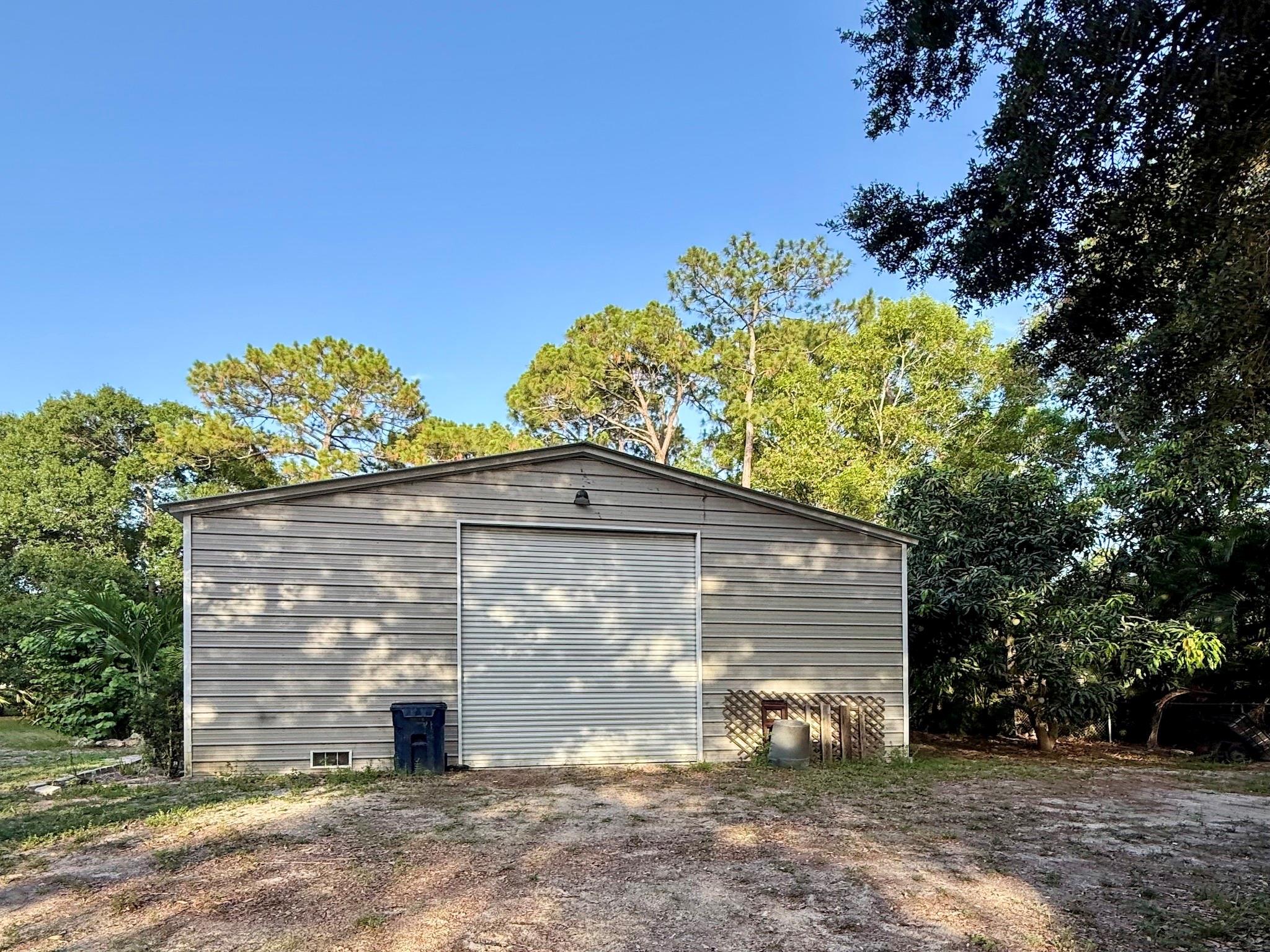 Tucked away on 1.25 acres of beautifully landscaped grounds, this remodeled 3-bedroom, 2-bath home offers the perfect blend of comfort, space, and privacy. Set in a secluded area of The Acreage, surrounded by mature trees, the property provides a peaceful retreat from the hustle and bustle—ideal for those who value serene outdoor living. The grounds are fully landscaped with lush greenery, native plants, and a private fire pit area—ideal for quiet evenings under the stars. A 30 x 40 metal building provides ample space for a workshop, RV/Boat storage, or business use, while an insulated storage shed offers additional space! With a 2-car garage, plenty of extra parking, this home is a rare find for those seeking space and privacy in a beautiful setting.