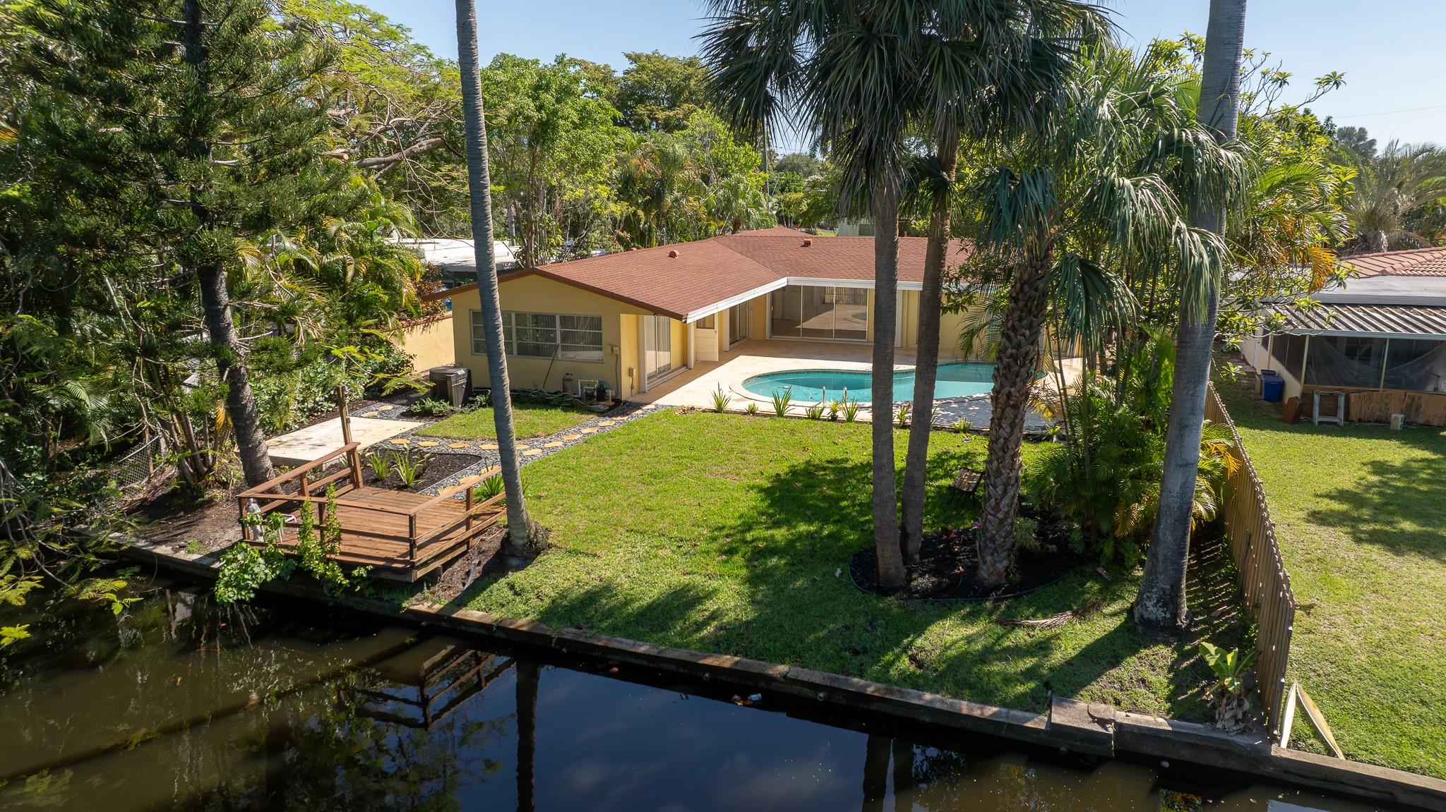 Pool home with on tranquil river front lot across from park-like setting. This is south Florida living! You'll love the two-car garage, split bedroom floorplan and the views of the pool and waterfront from almost every room in the house. Spacious open living areas. Kitchen, dining, and living room all open and overlook the pool. Separate laundry room with full size washer and dryer. Bonus pantry/storage room with a stand up freezer. Freshly painted inside and out. New four-point inspection available free of charge for buyer's use. Walk through tour has been virtually staged.