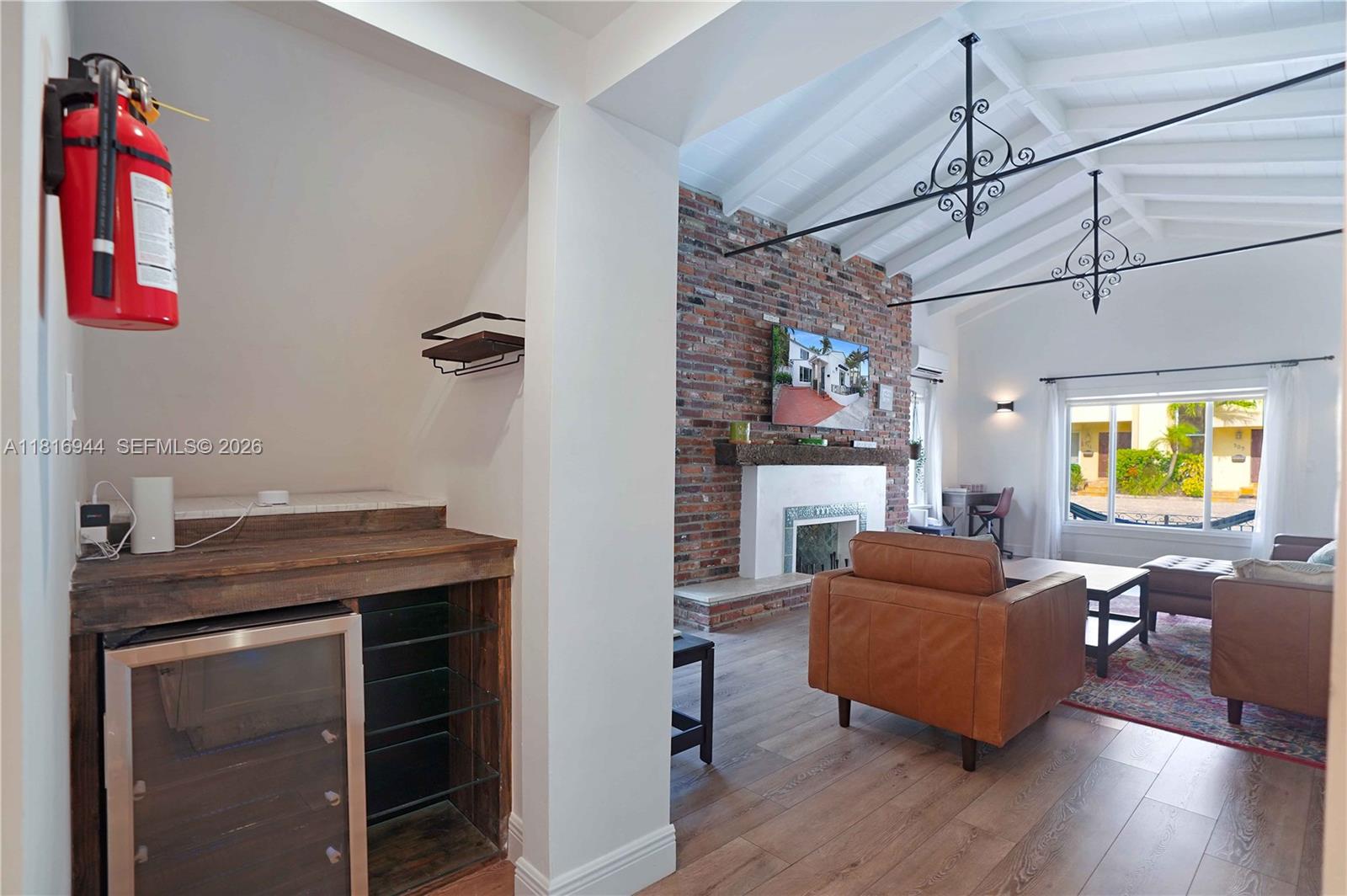 Fully renovated Hollywood beach home blending classic charm with modern flair—just steps from the sand! This 3-bed, 2-bath gem features a spacious master suite with fireplace, chef’s kitchen with stainless steel appliances, wine fridge, and bar area. Enjoy soaring cathedral ceilings, wood floors, and a cozy brick fireplace in the living area. Outside, unwind in your tropical retreat with a covered patio, grill station, lounge area, and relaxing jacuzzi. Perfect as a dream beach residence or a high-income rental. Live where every day feels like a vacation!