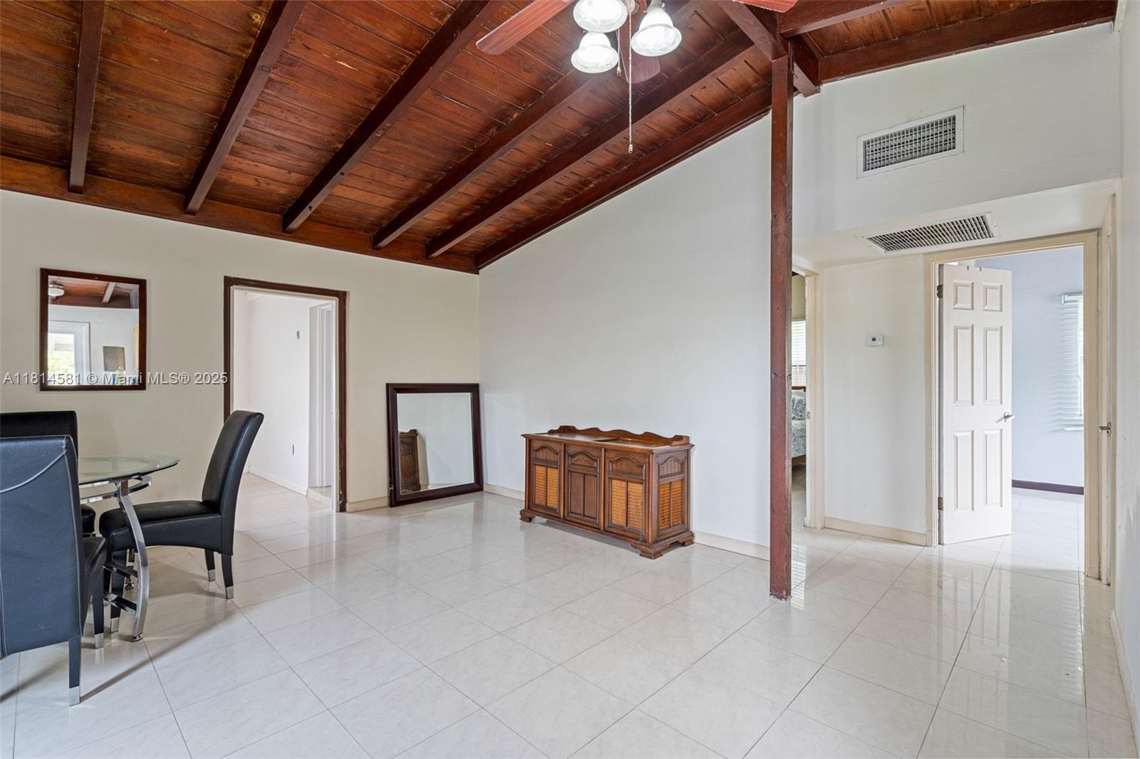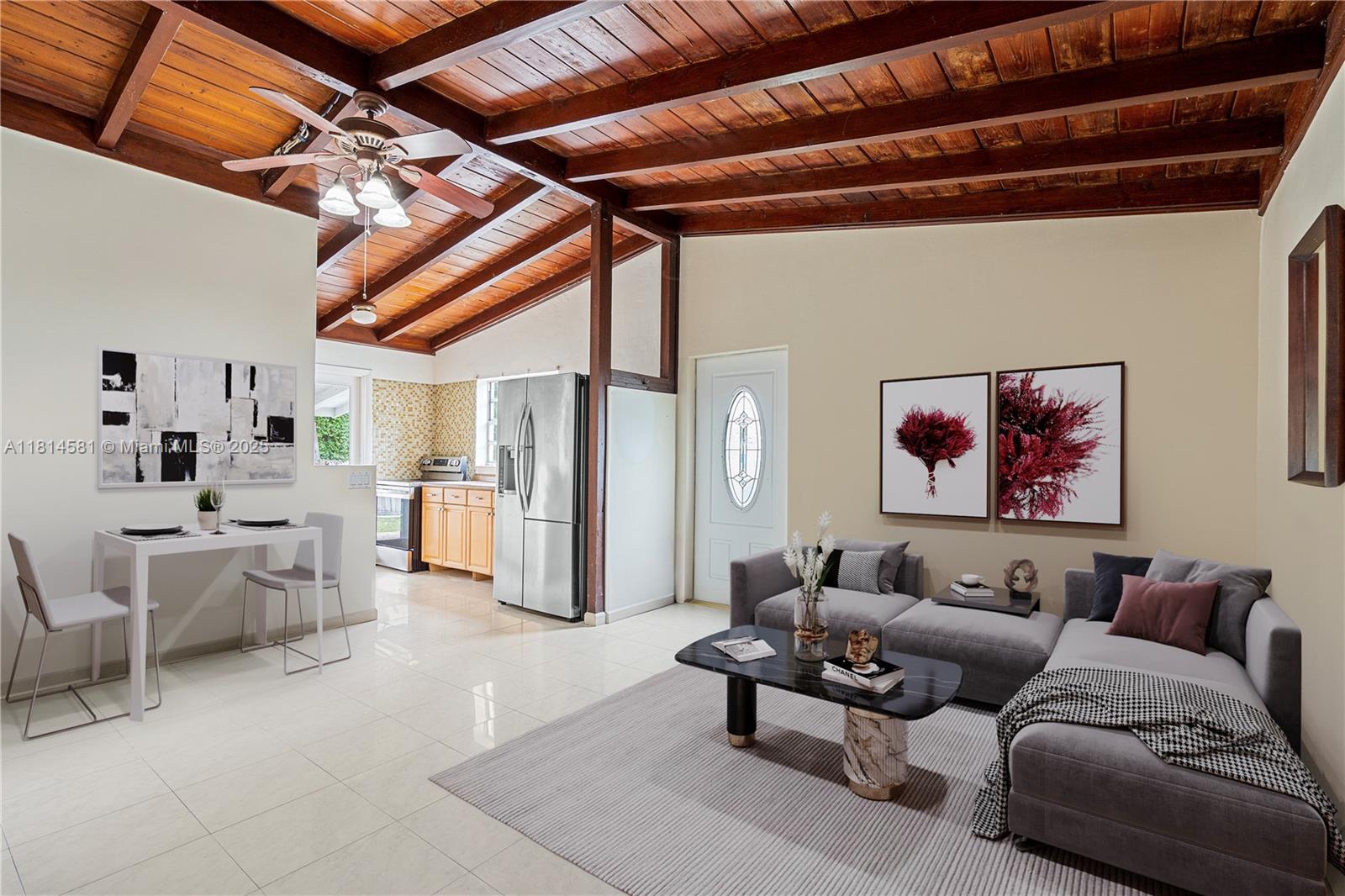 Vintage, virtually staged! Welcome to this beautifully 3-bedroom, 2-bath family home that seamlessly blends timeless Art Deco character with modern finishes. Soaring cathedral ceilings and an open-concept layout create a spacious and inviting atmosphere. The heart of the home is a stylish, open kitchen designed for functionality and flow, with easy access to a generously sized backyard—ideal for gatherings or your future dream pool. With plenty of on-site parking, convenience is never a concern. Located in the highly desirable Ojus school district, this home offers unbeatable access to I-95, the Turnpike, and all major highways. You’re just minutes from top-rated hospitals, universities, dining hotspots, shopping centers—including Aventura Mall—and the beach.