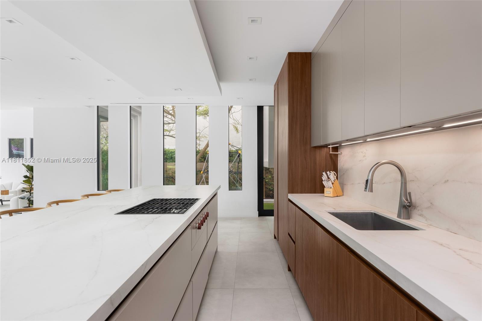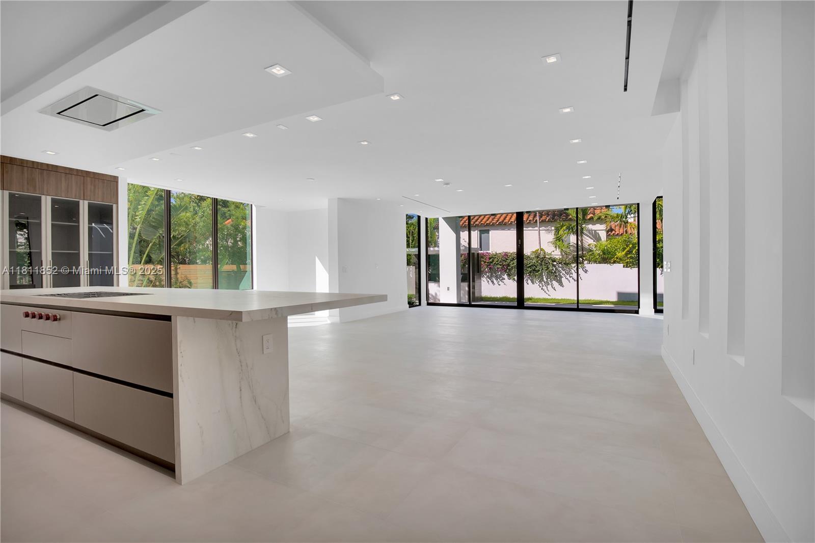 Exquisite 2022 built home is a 4,062 sq ft designer tropical retreat, nestled on prestigious Pine Tree Drive in Miami Beach. A short distance to beaches, world-class dining, and elite shopping. This resort style 5 beds, 5.5 baths residence offers a private pool, heated spa, and rooftop terrace. Spacious open layout with dramatic 10–22 ft ceilings, sleek Italian flooring, linear air diffusers, and impact-rated glass windows and doors. Gourmet Italkraft kitchen features Consentino countertops, Sub-Zero appliances, and premium gas cooktop. Outdoor kitchen has gas BBQ, shower, and lush landscaping. Floating oak staircase leads to expansive bedrooms with en-suite baths. This home features custom vanities and premium Hansgrohe-Axor fixtures. A sophisticated sanctuary in the heart of Miami Beach.