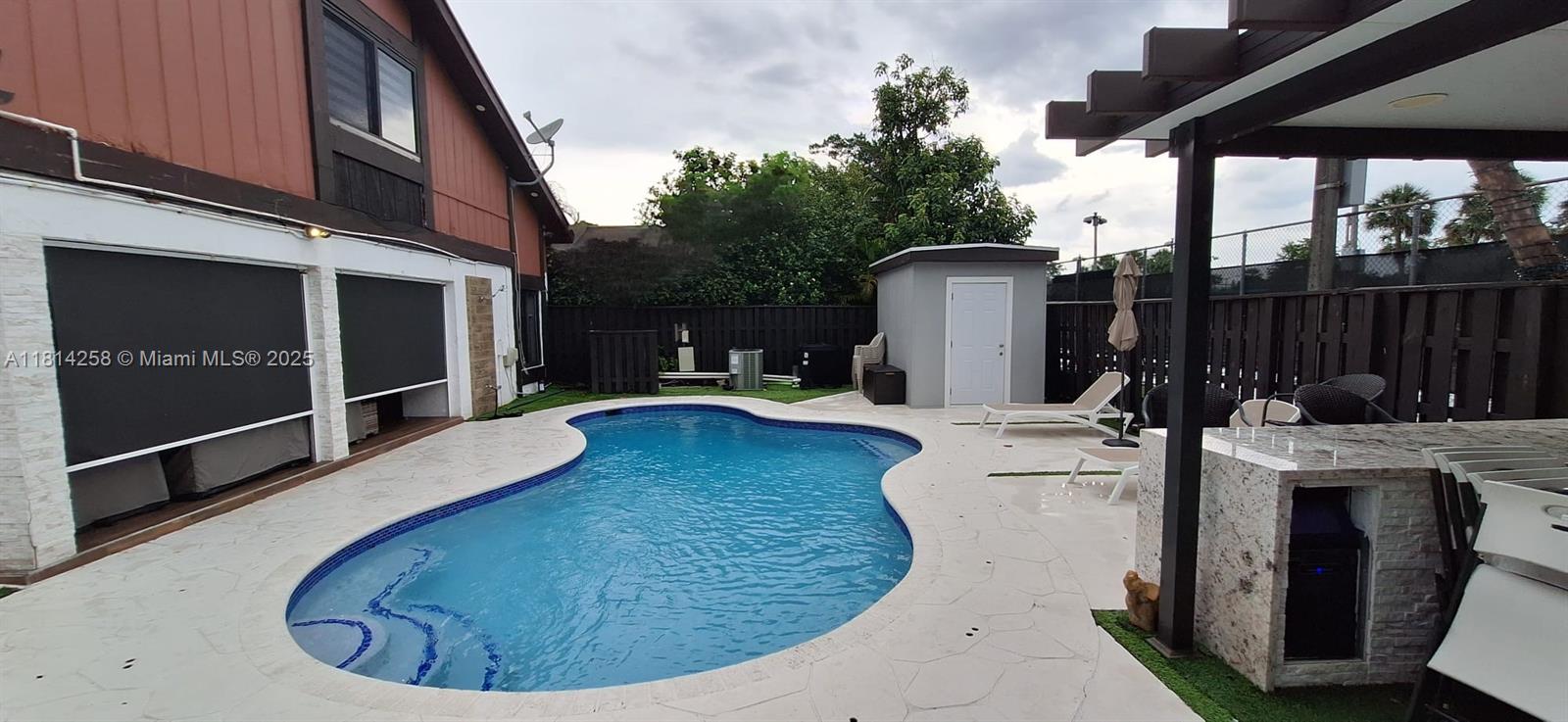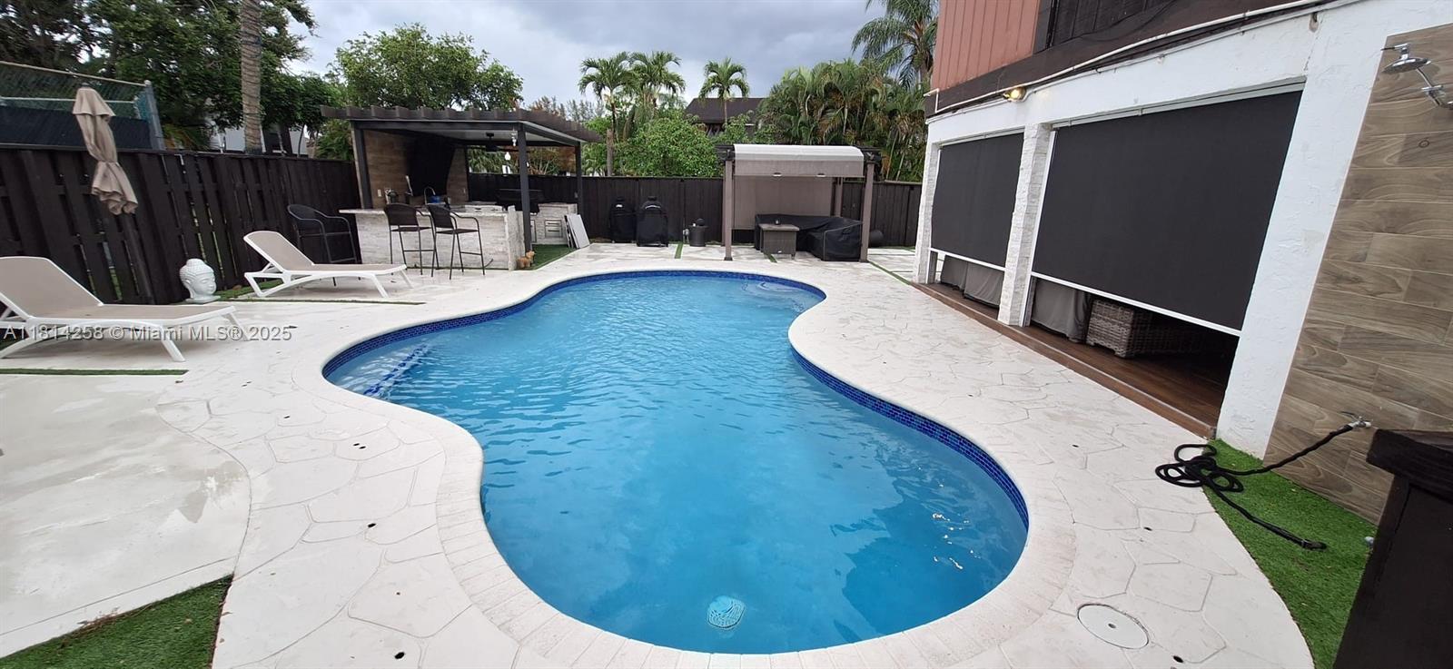Stunning Corner Pool Home in the Heart of Pembroke Pines. Step into this beautiful corner pool home, ideally located in the heart of Pembroke Pines. The amazing kitchen boasts marvelous granite countertops and top-of-the-line appliances, perfect for culinary enthusiasts. Enjoy the convenience of a half-bath on the first floor. The spacious outdoor pool area features a covered terrace and gazebo, making it ideal for entertaining guests. This home includes a brand-new AC and water heater for added comfort and efficiency. The wonderful living area, with its high ceilings, offers a peaceful retreat—perfect for quiet moments and morning coffee.