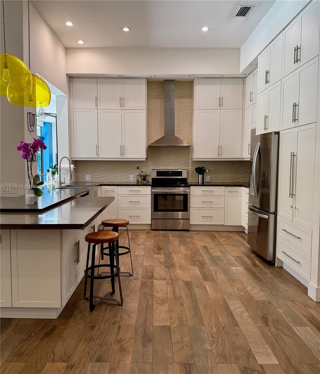 Sprawling 5,116 SF home on a 23,332 SF lot. Main house features 4 bedrooms, 4 baths, office and fully enclosed garage converted to a custom art studio/workshop. Soaring 12' ceilings, tons of natural light, and spacious kitchen that connects to open living spaces making it perfect for entertaining. Pool, avocado trees, and lush, private yard. Split bedroom plan, multiple flex spaces, ample storage, and parking. Separate 900 SF guest house with 2 bedrooms, 1.5 bathrooms, full kitchen, laundry and its own private gate entrance—ideal for rental income or in-laws. A rare opportunity to own a creative, functional, and potentially income-generating retreat in a prime location! Priced to sell.