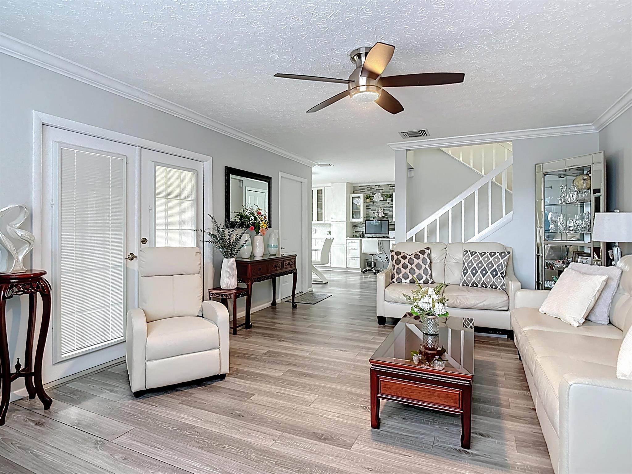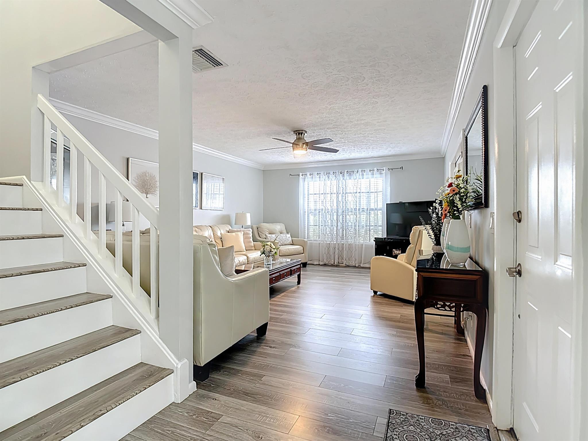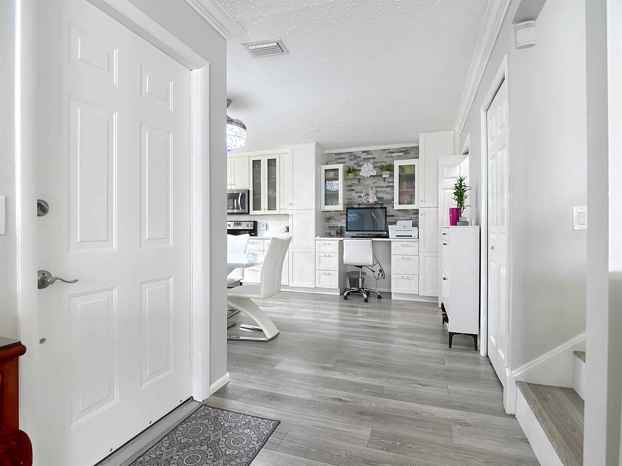 Welcome to this beautifully updated 2-bedroom, 2-bathroom townhouse offering 1,384 sq ft of stylish, move-in ready living in the sought-after Jamestown community--where comfort, convenience, and coastal charm converge. With no age restrictions and a prime location just 5.7 miles from Hobe Sound Beach and minutes from downtown Stuart, this residence places you near top-tier shopping, dining, and entertainment options. Step inside to discover a thoughtfully renovated interior, beginning with luxury vinyl plank flooring throughout the first floor and staircase. The fully remodeled custom kitchen boasts modern cabinetry, stunning quartz countertops, and a full suite of Whirlpool stainless steel appliances. A great spot for a desk or breakfast bar that had been is built into the cabinetry.