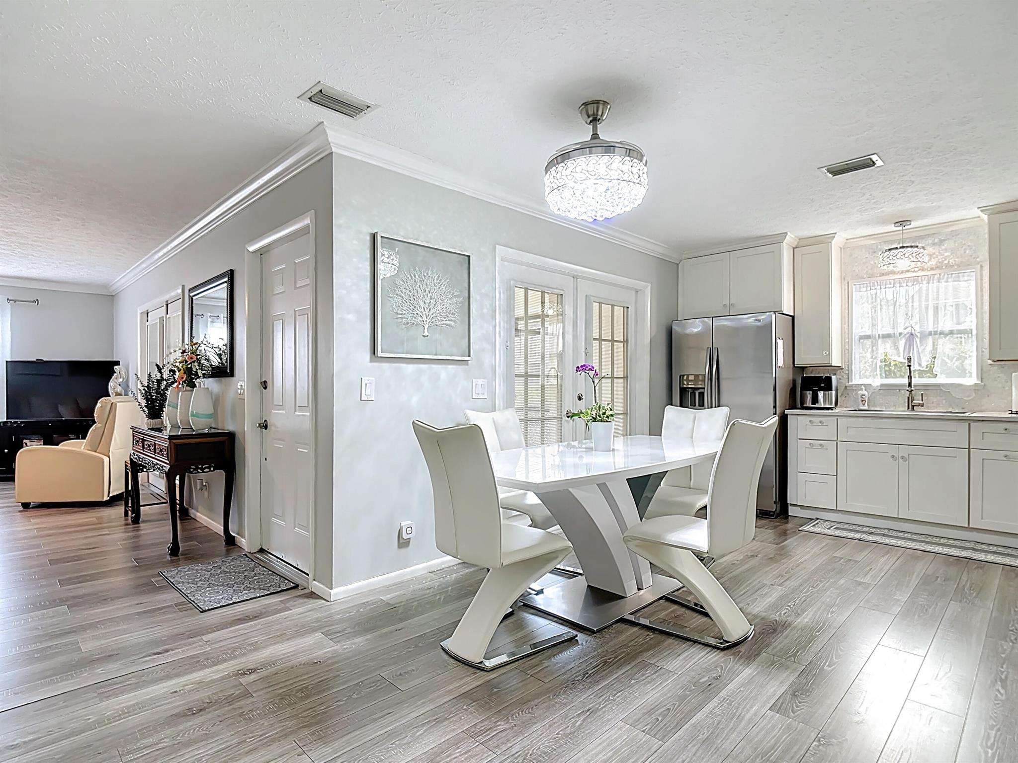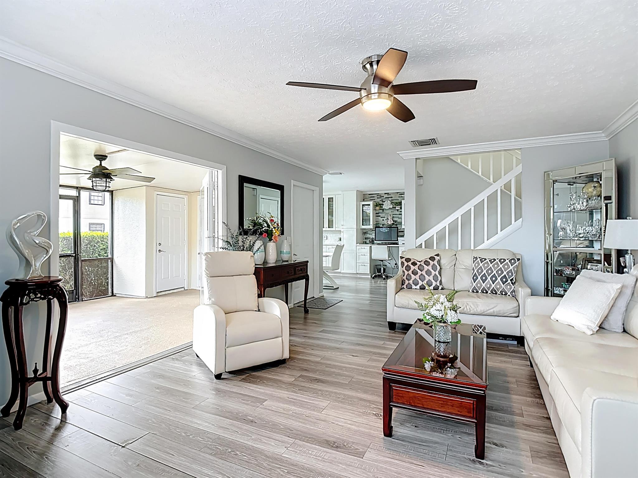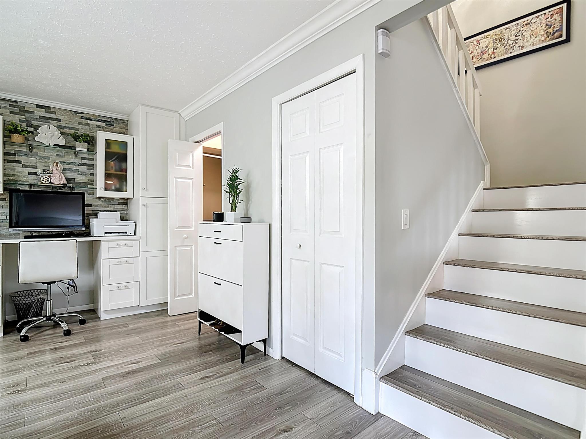 Welcome to this beautifully updated 2-bedroom, 2-bathroom townhouse offering 1,384 sq ft of stylish, move-in ready living in the sought-after Jamestown community--where comfort, convenience, and coastal charm converge. With no age restrictions and a prime location just 5.7 miles from Hobe Sound Beach and minutes from downtown Stuart, this residence places you near top-tier shopping, dining, and entertainment options. Step inside to discover a thoughtfully renovated interior, beginning with luxury vinyl plank flooring throughout the first floor and staircase. The fully remodeled custom kitchen boasts modern cabinetry, stunning quartz countertops, and a full suite of Whirlpool stainless steel appliances. A great spot for a desk or breakfast bar that had been is built into the cabinetry.