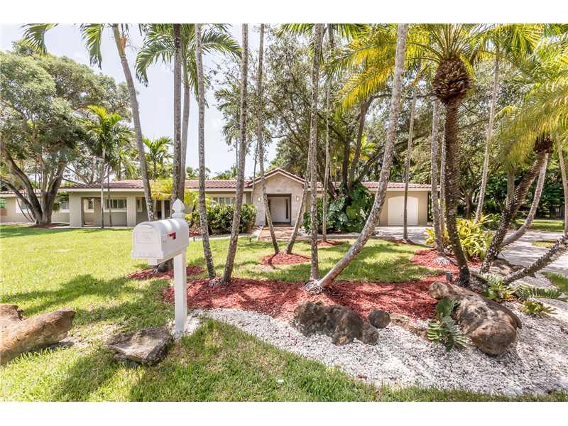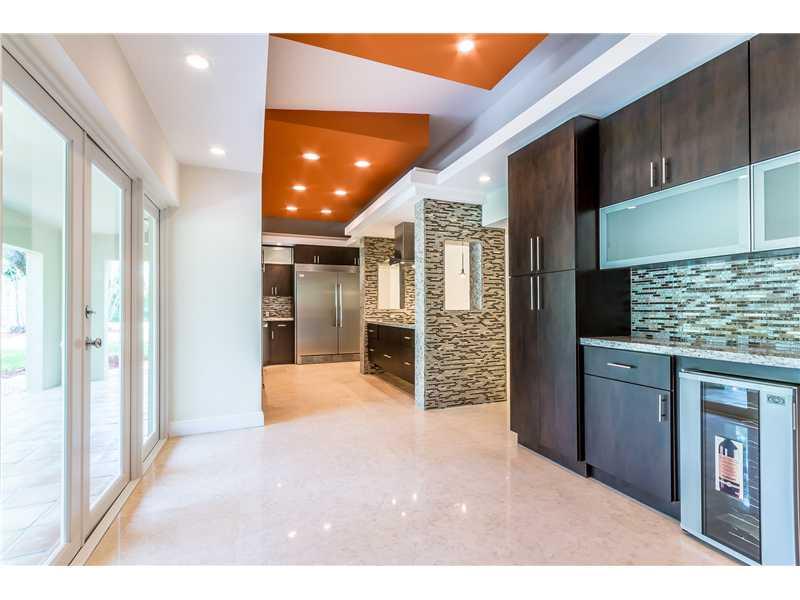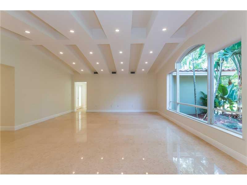 Attention tennis enthusiasts! Remodeled 6/4.5 corner acre home on quiet dead-end street. New roof w/warranty, impact windows, kitchen w/SS appliances, cooking island, egyptian marble and wood floors, crown moldings, plantation shutters, coffered ceilings. Master bedroom has private office, soaking tub and separate shower. Exterior boasts large covered terrace, heated pool, lighted tennis & basketball court,lush tropical landscaping.