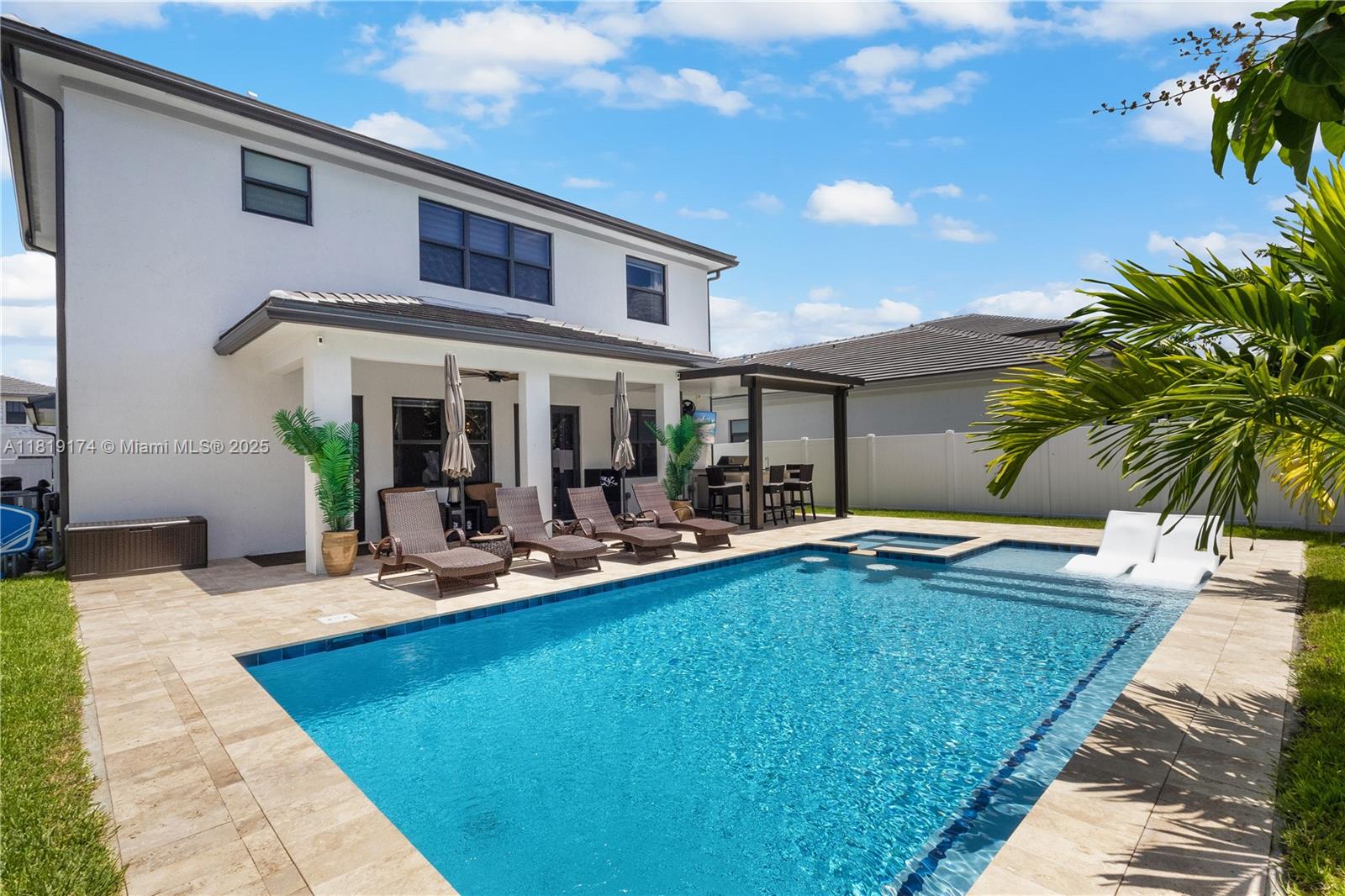 Luxury Living with Pool & Outdoor Kitchen in Marbella at Miramar! This stunning 4-bed, 3-bath home offers the perfect mix of comfort and style. Enjoy your private backyard oasis with a custom pool, outdoor kitchen, and built-in grill—perfect for BBQs and entertaining. Inside features a bright, open layout with impact windows, granite countertops, and stainless steel appliances. A full bedroom and bath on the first floor add flexibility. Upstairs, the spacious master suite boasts walk-in closets and a spa-style bath. Includes a 2-car garage and lush landscaping. Located in Marbella, a gated community with 24-hour security, resort-style pool, clubhouse, and gym.