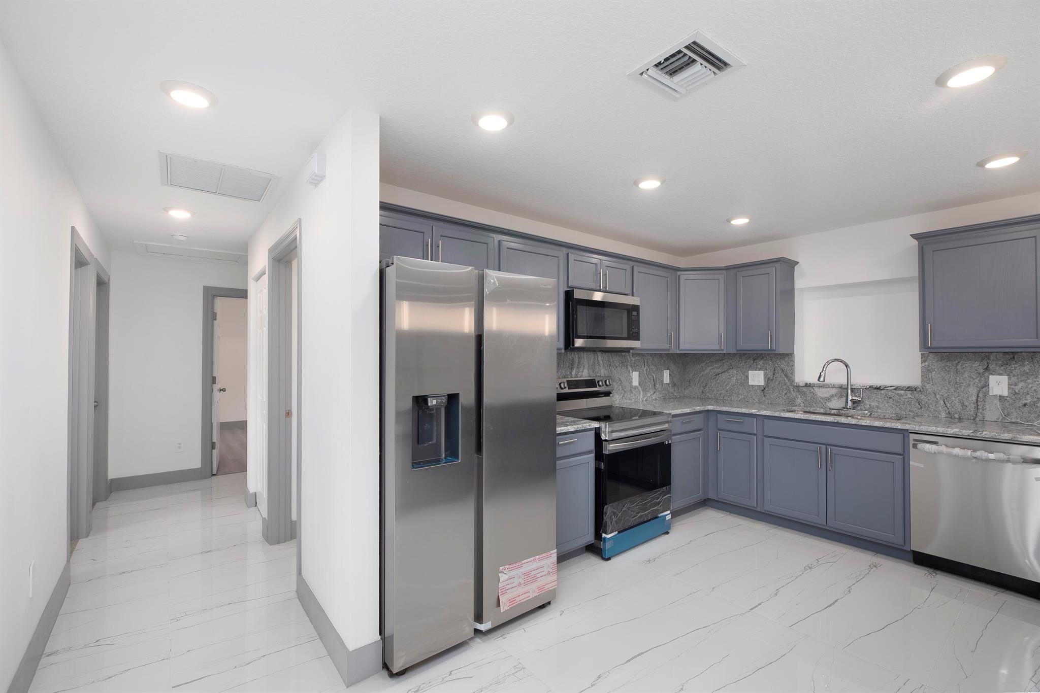 Completely remodeled from top to bottom, this stunning 4-bedroom, 4-bath with Den home features 3 full master suites, including a private guest room with its own bath. The gorgeous kitchen boasts modern finishes and stainless steel appliances. Beautiful flooring, elegant fixtures, and impact windows provide hurricane protection and energy efficiency. Located on a peaceful cul-de-sac with no HOA and no rear neighbors for true privacy. Just minutes from I-95, the Turnpike, beaches, top-rated schools, hospitals, colleges, restaurants, medical offices, and shopping. Move-in ready with a new 2024 roof, new water heater, and septic system. A rare find in a quiet, well-situated neighborhood--don't miss it!
