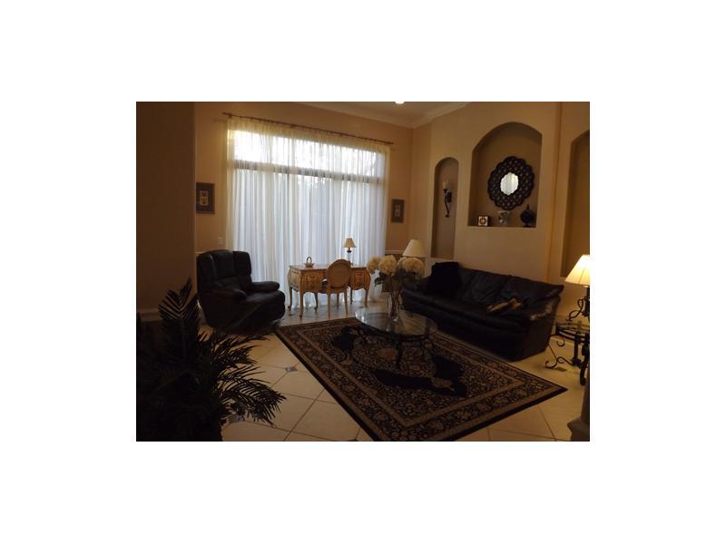 Spectacular one story Mediterranean home in luxurious guard gated community featuring 5 bedrooms, 3.5 baths, guest suite, 3-car garage, covered patio, laundry room. The main living areas have 12 foot ceilings with crown, chair rail molding & tray ceilin gs in the master bedroom and formal dining room. Living area has ceramic tile floors, marble in master bathroom, wood floors in the bedrooms. Large kitchen with a casual dining area adjacent to the family room. Please see broker remarks for showings.