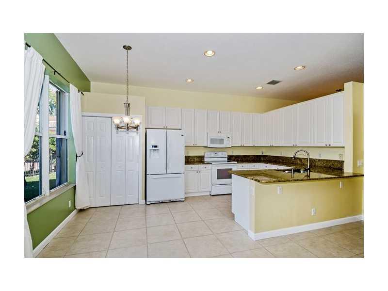 Perfect in every way! Fabulous corner lakefront lot in secure gated community! Large master suite has ample space plus beautiful lake view, huge master bath with separate Roman tub/shower & dual sinks! 3-way split bedroom plan gives added privacy! Fron t bedroom has picturesque bay window. Tile thru-out! Upgraded kitchen has granite counters, newer appliances & pantry. Alarm, accordion shutters, fenced. Home warranty included. Walk to pool. Easy access to I75/Florida turnpike/Miami & Ft. Laud airports.