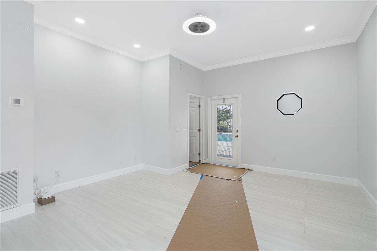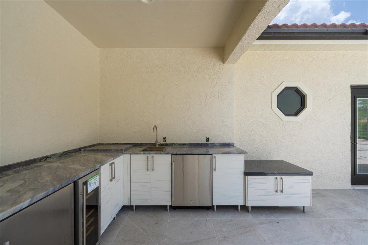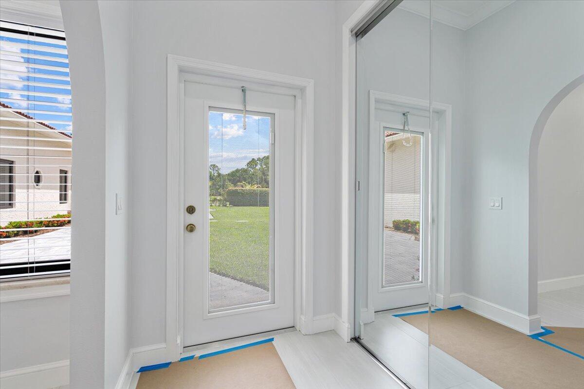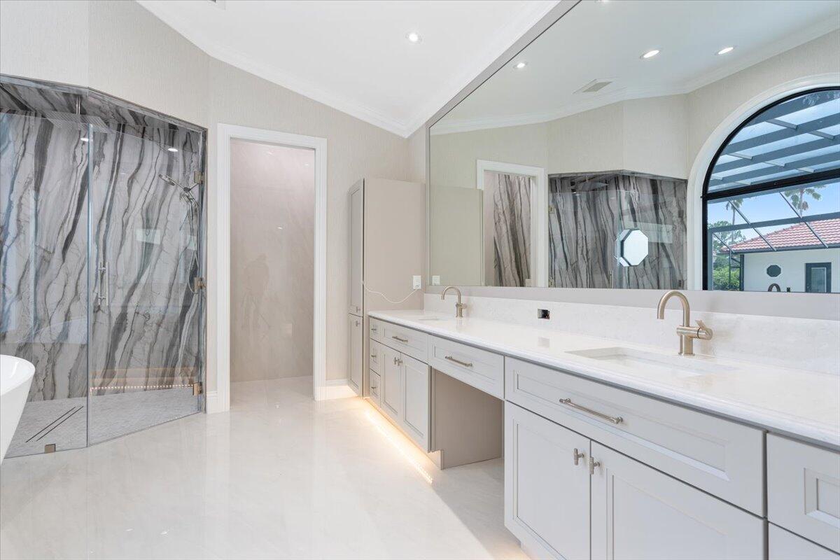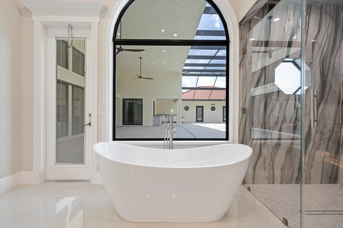 Exquisite Estate home with unrivaled quality finishes re-done to perfection! This home located in Manned gated community of PGA Village. With a total of 5 BR's, 4 BA's, Guest house, large screen enclosed pool & fabulous corner lot on 1.76 acres. Features CBS construction, Hurricane windows & doors, barrel tile roof (2018) plus 3 CG w/ tile flooring. Gorgeous porcelain floors, stunning featured wall w/ fireplace & TV soaring ceilings in spacious Great Room ideal for entertaining! Gourmet kitchen w/ LG Island, breakfast bar & storage, custom cabinetry, Jennair wall oven, Induction cooktop, pot filler, panel refrigerator, pantry, custom hood, kitchen nook dining with coffee bar right off laundry room. Grand Master suite with exceptional custom closet. Master Bath feels like a SPA!