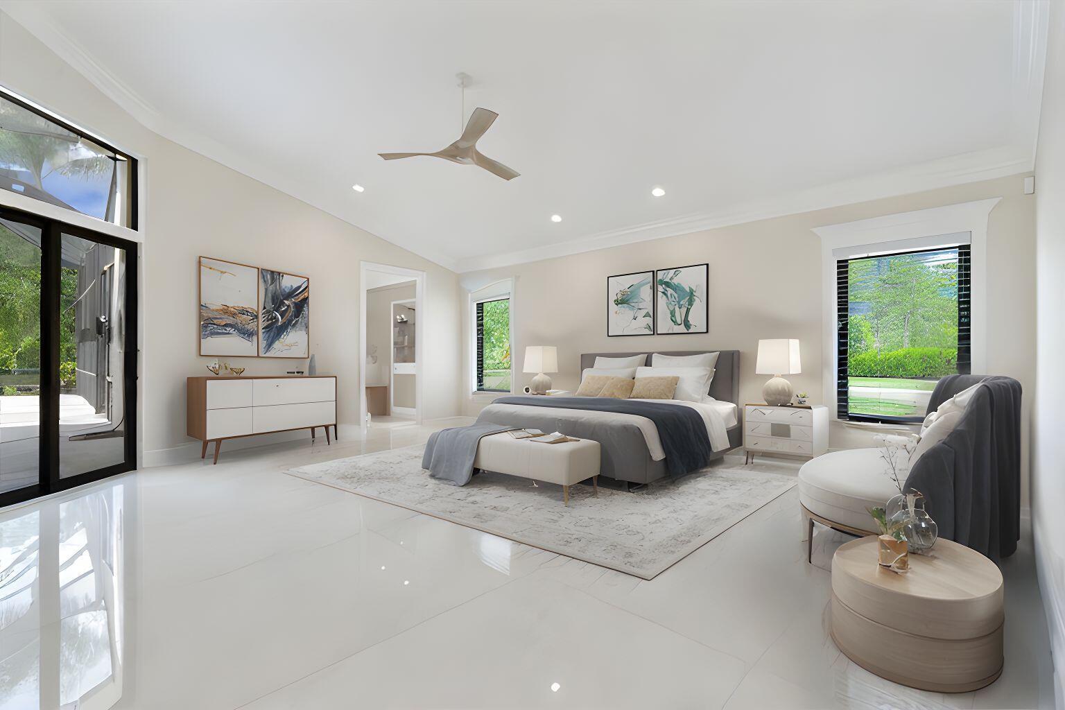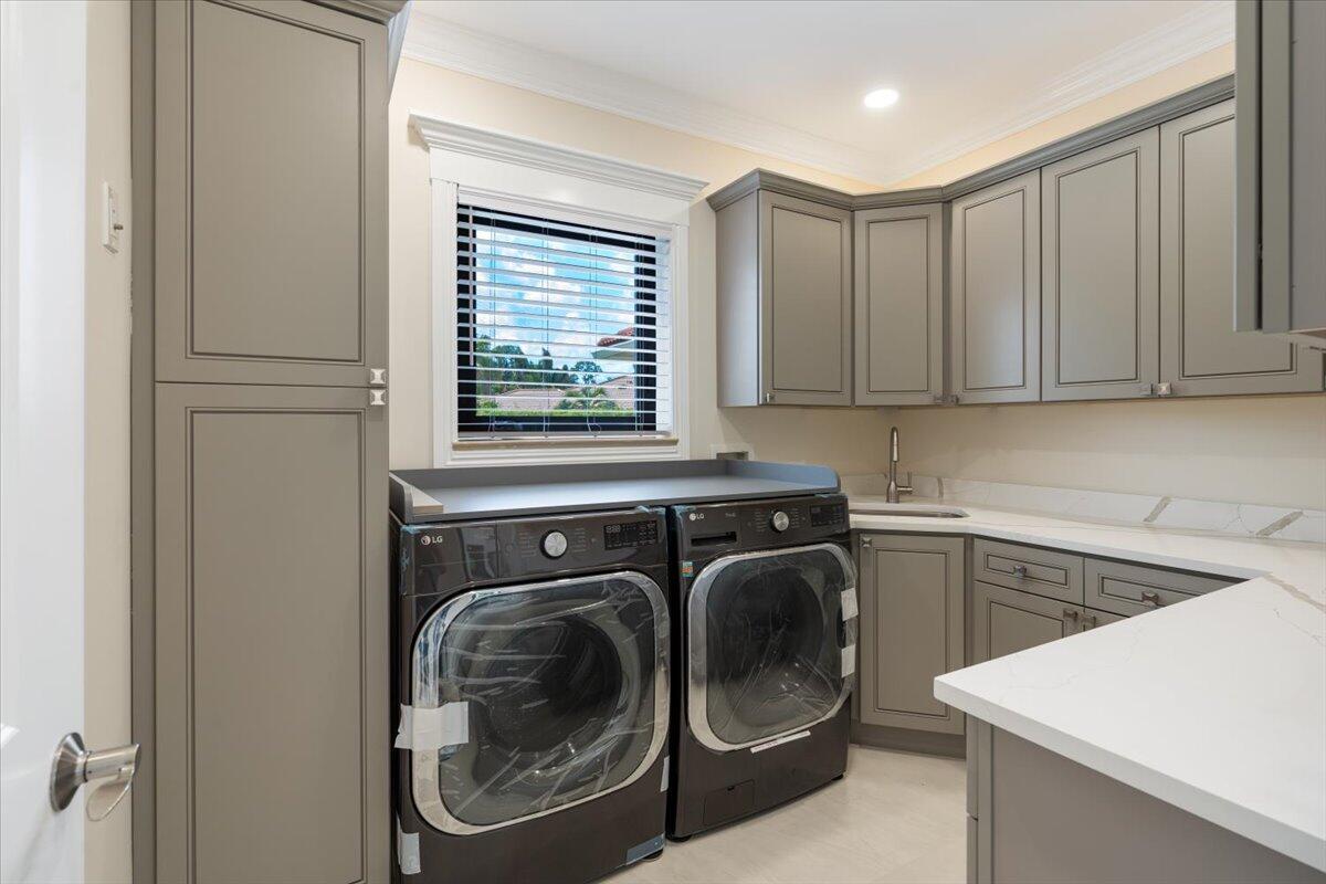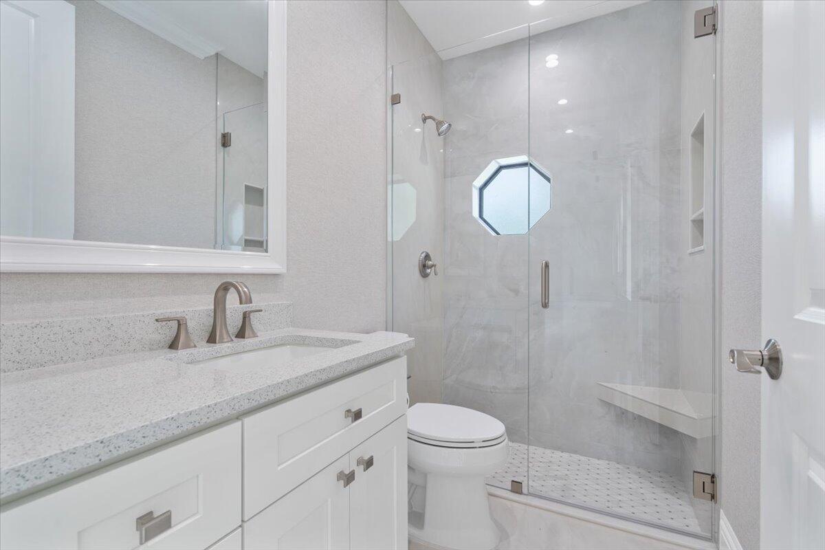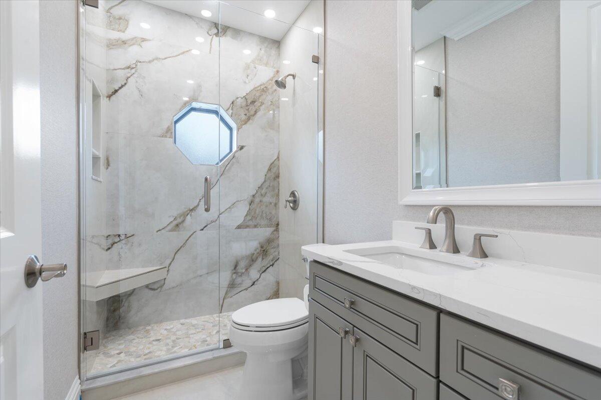 Exquisite Estate home with unrivaled quality finishes re-done to perfection! This home located in Manned gated community of PGA Village. With a total of 5 BR's, 4 BA's, Guest house, large screen enclosed pool & fabulous corner lot on 1.76 acres. Features CBS construction, Hurricane windows & doors, barrel tile roof (2018) plus 3 CG w/ tile flooring. Gorgeous porcelain floors, stunning featured wall w/ fireplace & TV soaring ceilings in spacious Great Room ideal for entertaining! Gourmet kitchen w/ LG Island, breakfast bar & storage, custom cabinetry, Jennair wall oven, Induction cooktop, pot filler, panel refrigerator, pantry, custom hood, kitchen nook dining with coffee bar right off laundry room. Grand Master suite with exceptional custom closet. Master Bath feels like a SPA!