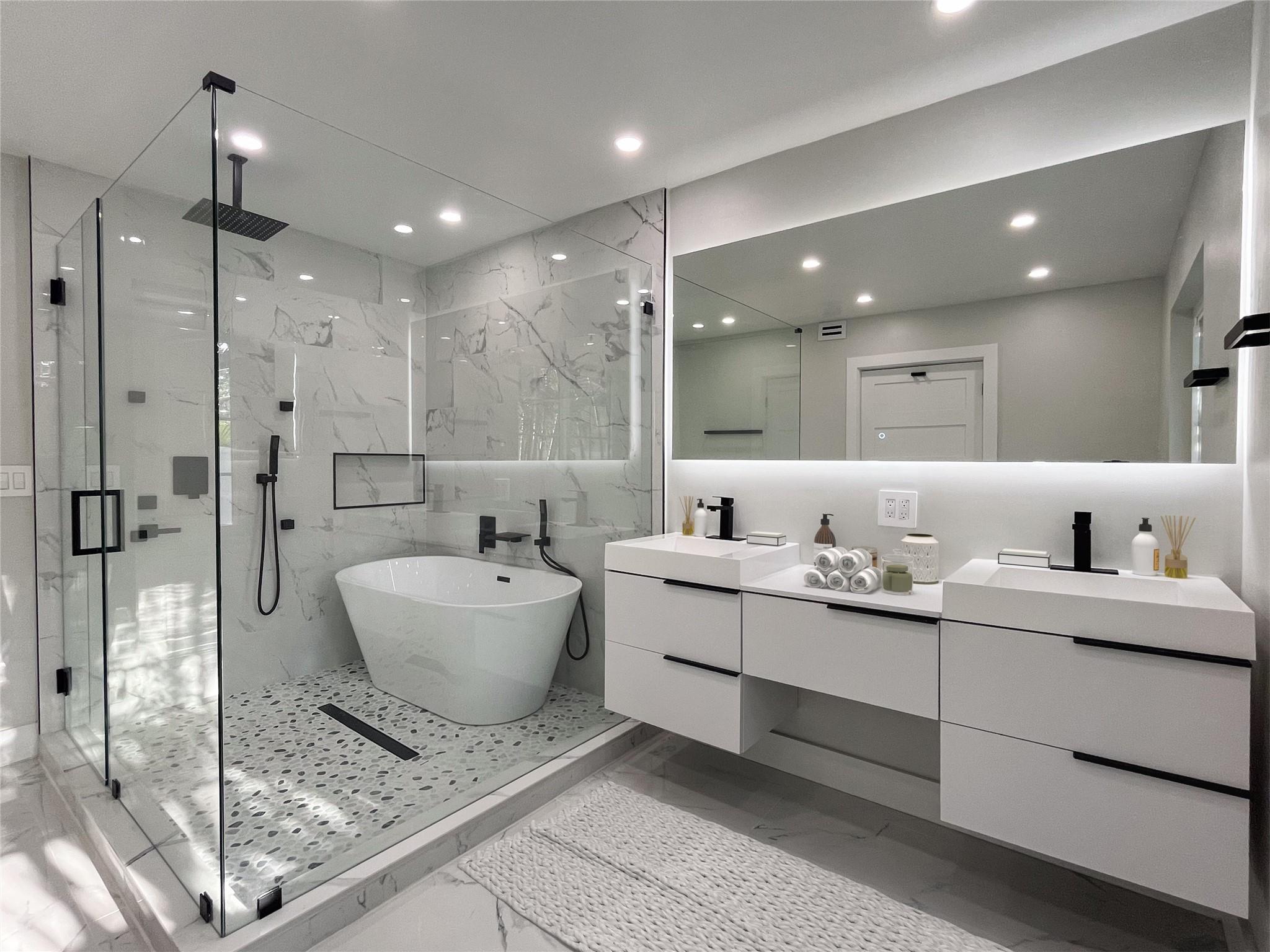 FANTASTIC DEAL! This "SoSo" West Palm Beach home sits on a 6,956 sqft., 65' X 107', lot and is just 2 blocks from the Intracoastal. The kitchen features quartz countertops & backsplash, premium cabinets and upgraded Cafe appliances. The bedrooms include recessed lighting, ceiling fans, & built-in closets. The primary suite boasts a luxurious ensuite bathroom with wet room, soaker tub, rainfall shower & body jets. The roof, A/C, tankless water heater, privacy fence, driveway/patio, and custom outdoor kitchen & bar all are new. Impact windows & doors throughout the entire property for safety and natural light. Also, the backyard shed offers ample additional storage. There's room for a pool as well.