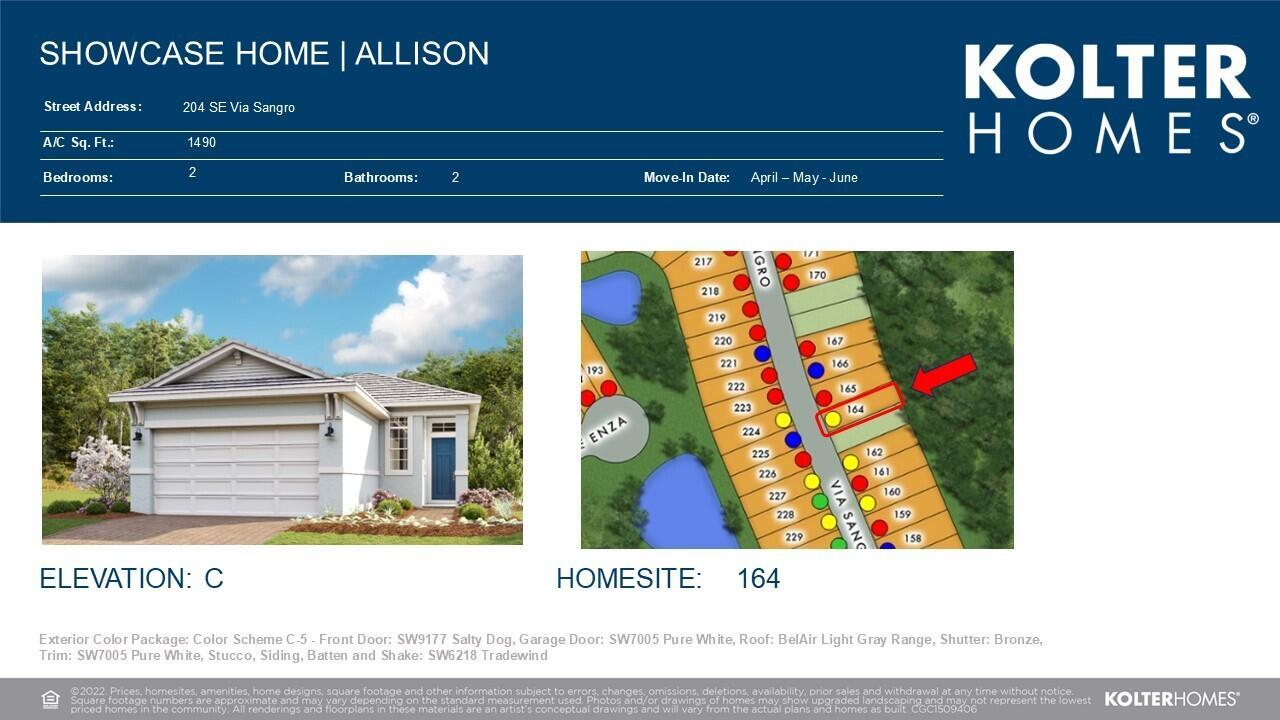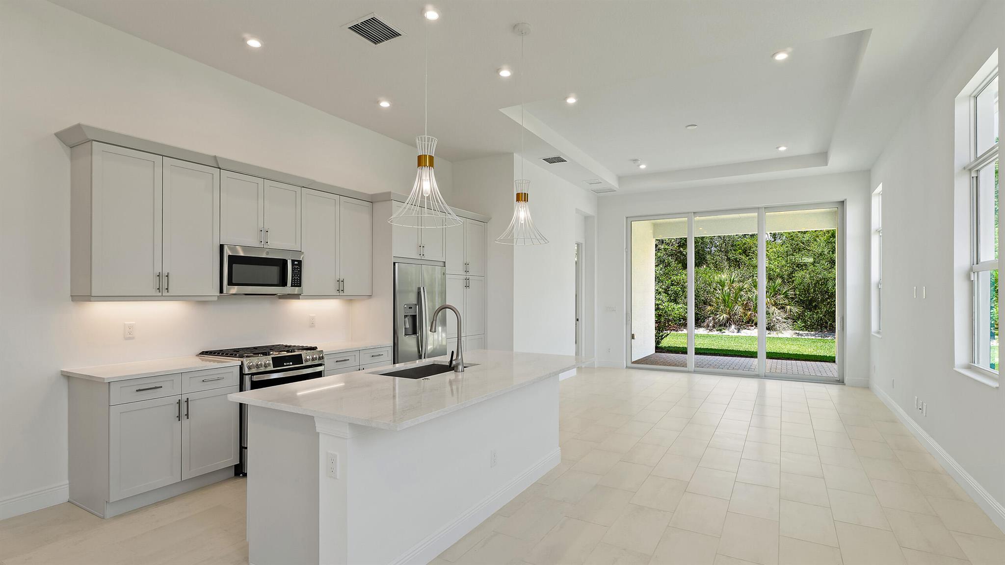 **NEW CONSTRUCTION** MOVE IN READY The Allison at Rivella is a 2-bedroom, 2-bathroom home that includes a Flex Room and a 2-car garage with a four-foot extension, providing additional storage and workspace. Situated on a Preserve view homesite with no homes behind, this residence offers a peaceful and private setting. The Great Room features 12' wide by 10' tall sliding glass doors, seamlessly connecting indoor and outdoor living while flooding the space with natural light. The kitchen is designed for both style and practicality, featuring Cambria quartz countertops, a counter-depth refrigerator, a double trash pullout, and under-cabinet lighting.