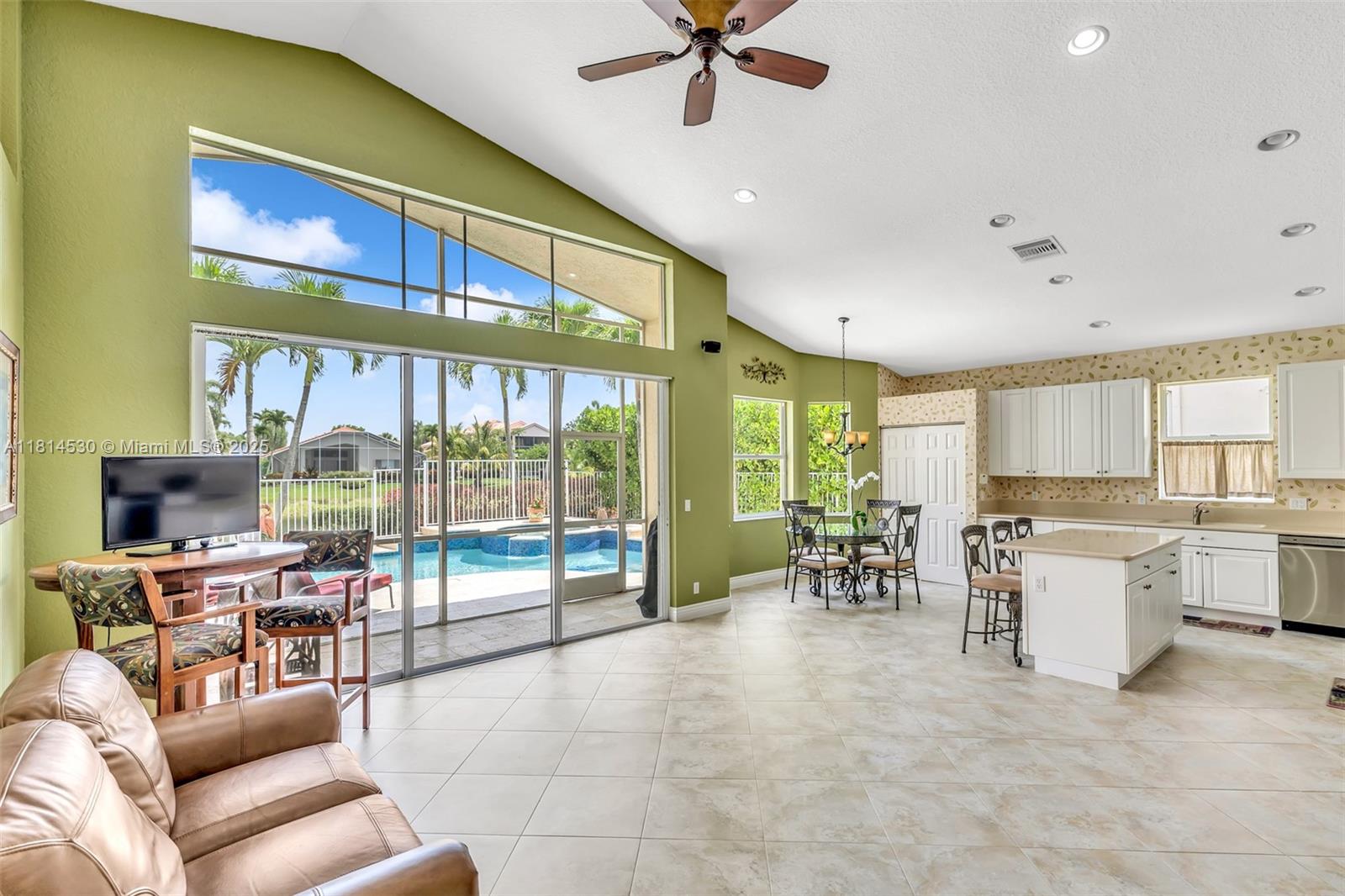 Experience this stunning, 4/3 lakefront home in the stunning, guard gated, safe haven community, The Isles at Wellington. Nestled in the heart of the World Renowned, World Class Equestrian in Wellington. You'll say WOW the moment you open the door! Long, wide open hallway and extremely high 14ft ceilings, open floor plan, overlooking the tropical landscape, completely remodeled pool, jacuzzi & lake front view. Recent upgrades include newer AC unit, pool and jacuzzi heater and stained tile grout(10 yr transferable warranty). Roofs about 10 yrs, in great shape and no damage or repairs. Pool Features include a state of the art, completely renovated pool deck, pool plaster, self cleaning pool,remote control/ automated system, mosaic design. Desired school district,World class amenities.