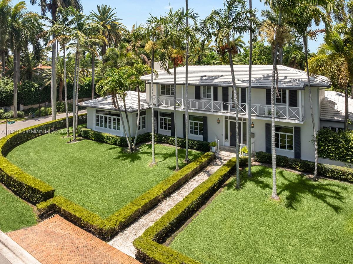 Embrace classic coastal elegance in the heart of Miami Beach. This 4 beds, 4 baths Palm Beach-inspired colonial estate was masterfully designed by acclaimed architect Russell Pancoast, sits on a prized corner lot in exclusive Sunset Island II. The home blends classic elegance with modern comfort - featuring terrazzo floors, Art Deco details, and a grand curved staircase. The gourmet kitchen offers a marble island, top-tier appliances, a cozy breakfast nook, and a dedicated prep area—seamlessly flowing into a spacious TV lounge and office alcove. Elevated on the 2nd floor, the sunlit primary suite captures tranquil garden views, offering a serene private escape. Outdoors, enjoy a coral stone-framed pool, expansive patio, charming guest house, 2-car garage, and dual entrances.
