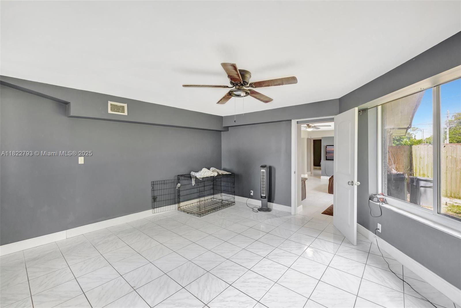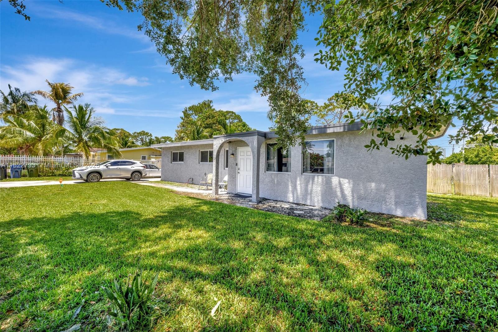 Spacious open floor plan with desirable triple-split bedroom layout, perfect for privacy and flexibility! This maintained home features impact windows and doors throughout for a peace of mind, plus a sprinkler system, and saltwater filtration for added efficiency. The fenced yard is perfect for kids or pets, and a large lot offers plenty of room to add a pool. The enclosed carport provides versatile space - use as additional storage, a home office, or explore rental income potential. New electrical lines are being installed underground in the neighborhood and were just installed at the property. Ideally located to schools, major highways, shopping, and more. Don't miss this versatile and secure home with room to grow and earn! **Refrigerator does not convey**
