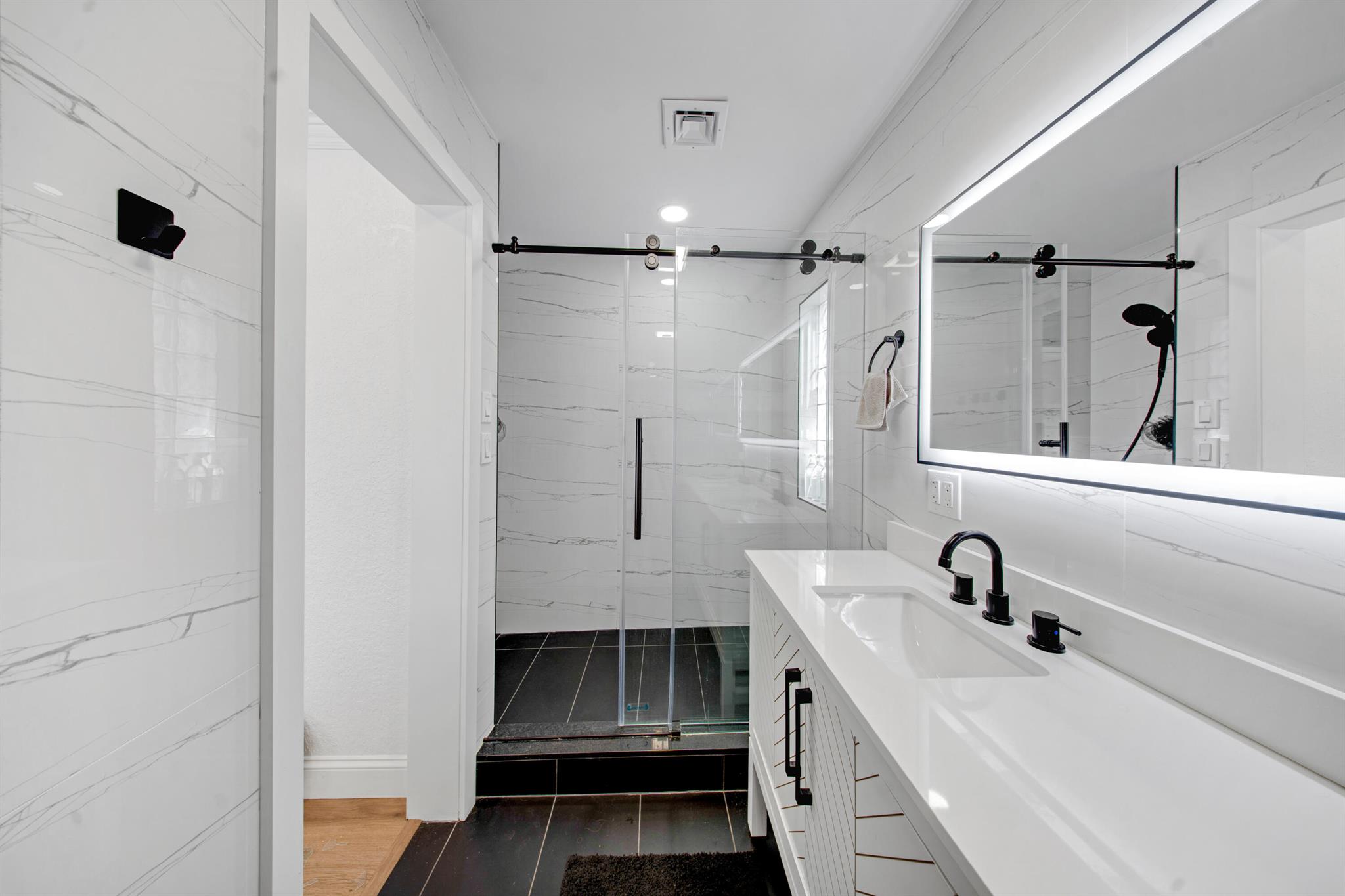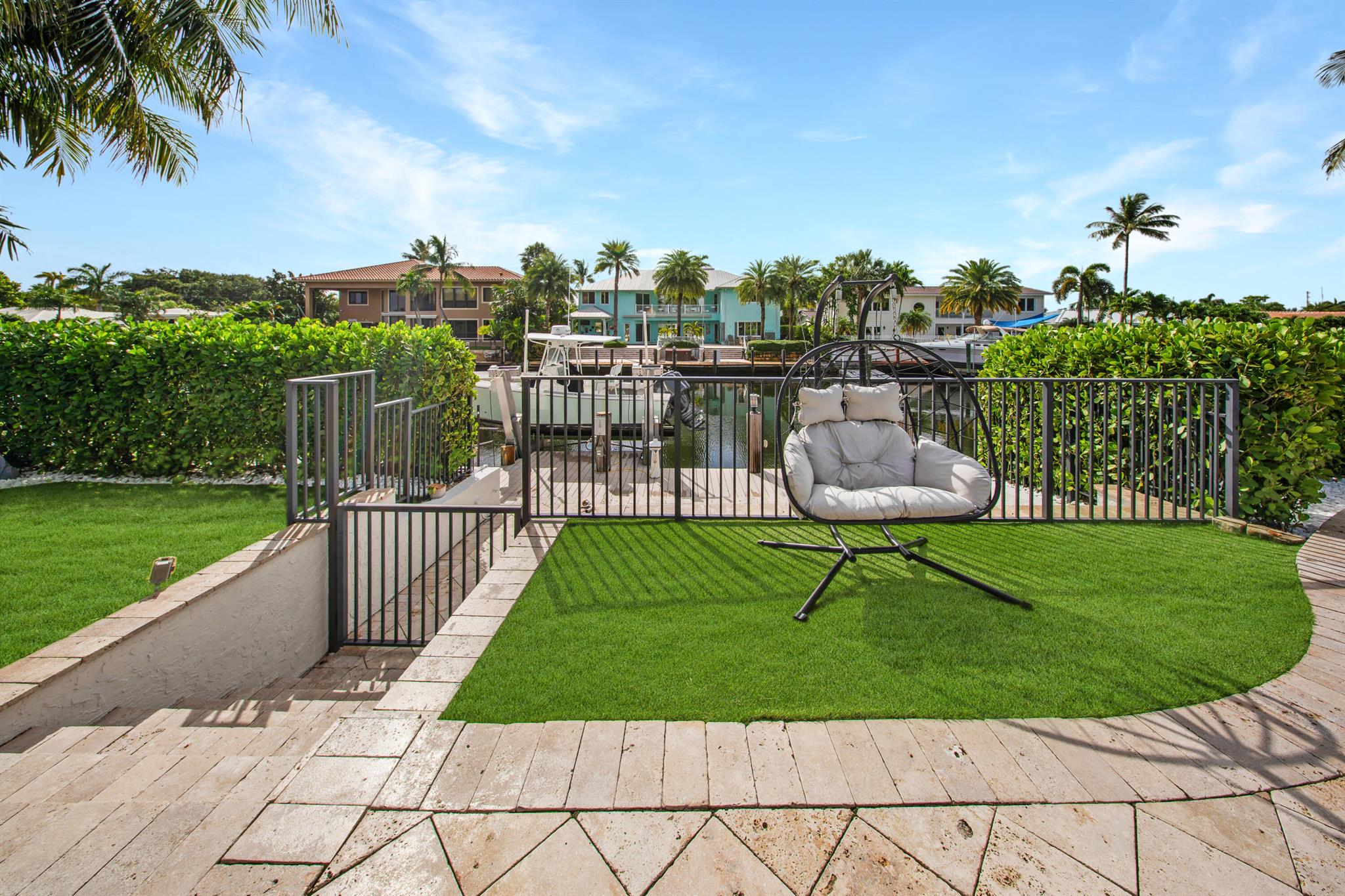 This beautifully redesigned estate in Venetian Isles offers 90 feet of waterfront and a private dock, ideal for those who desire the ultimate in coastal living. Highlights include dual primary suites, elegant marble and modern porcelain tile flooring, refined millwork, plantation shutters, and soaring ceilings. French doors in every room create a seamless indoor-outdoor flow, opening onto expansive terraces that embrace the waterfront setting.