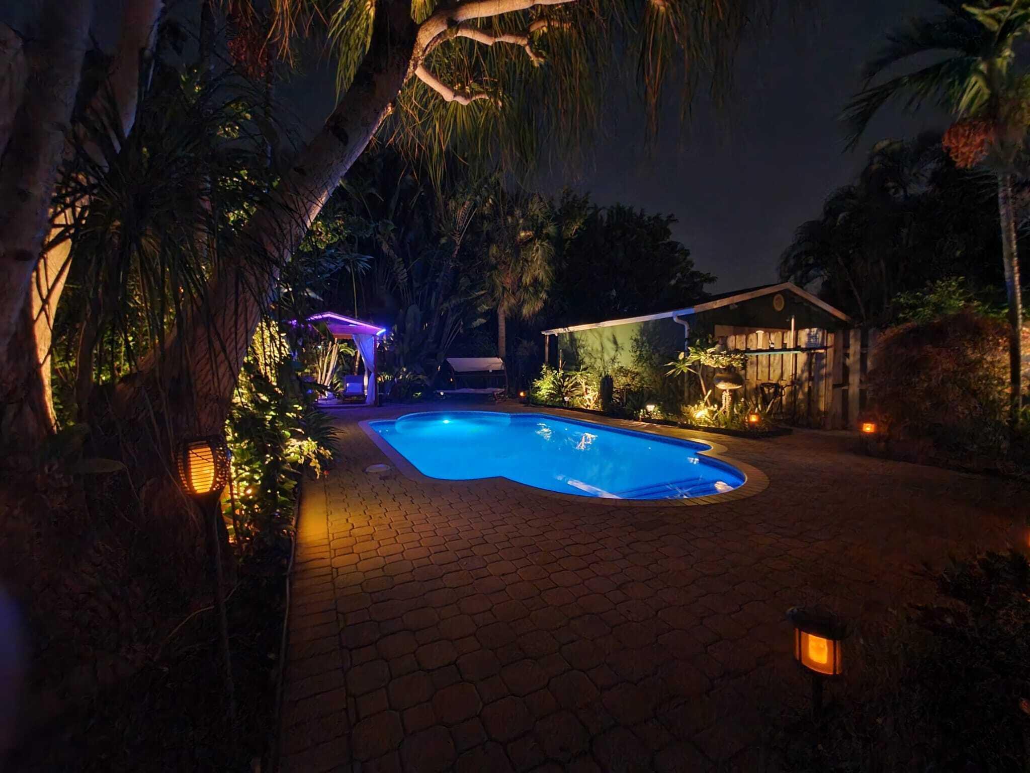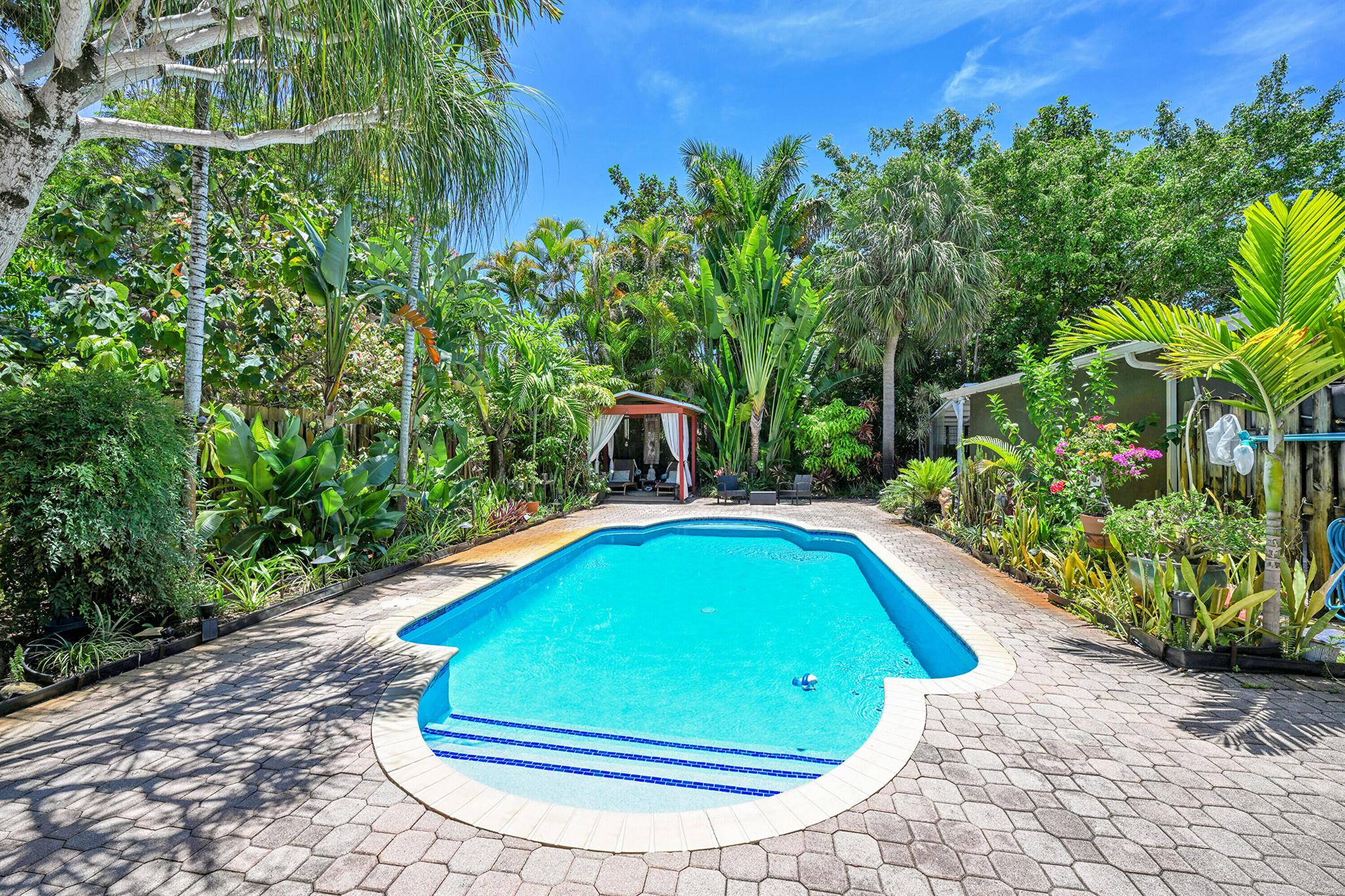 Tropical Retreat Meets Smart Investment.Upgraded 3BD/2BA concrete block home in a lush, vibrant neighborhood. This home features terrazzo, Spanish tile, PVC floors, Moroccan-style backsplash, paid solar, updated electric (2023) & plumbing (2025, 30-yr warranty), impact windows, Kevlar curtains, and newer roof. Enjoy a Diamond Brite pool, gazebo, outdoor shower, fruit trees & bamboo courtyard. Detached guest suite earns ~$30K/yr as Airbnb. Bonus: shed/gym + generator. Don't miss this incredible lifestyle and investment opportunity!