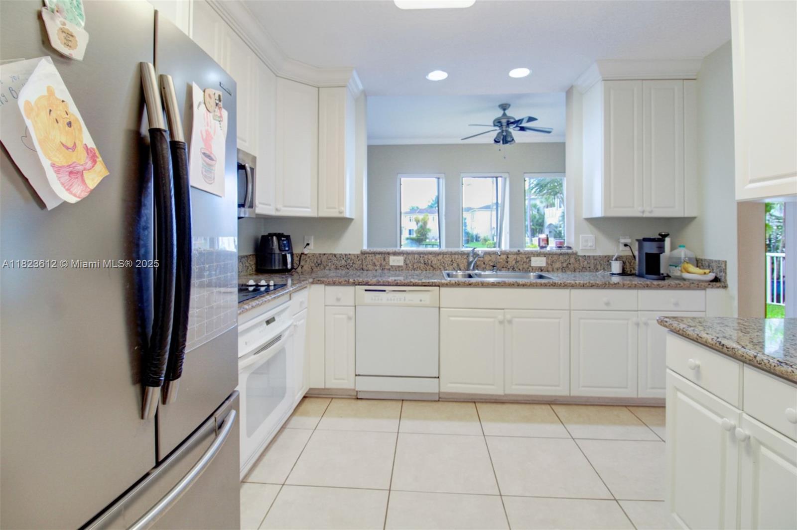 Welcome to this 3-bedroom, 2.5-bathroom home in prestigious gated community of Aventura Lakes. A unique location, with views overlooking a serene canal and fountain. Offering over 2,200 sq. ft. of living space, this residence features tile flooring throughout the first level and wood flooring on the second level. The primary suite boasts a large walk-in closet with built-in cabinetry; additional bedrooms also offer custom-built storage. A full-size laundry room, and accordion hurricane shutters provide peace of mind. Home is within walking distance to Chabad and Charter Sofer High School. Amenities including two swimming pools, gym and more. Great home with 24/7 security, on-site management, and a prime location near top-rated schools, world-class shopping, dining, and beautiful beaches.