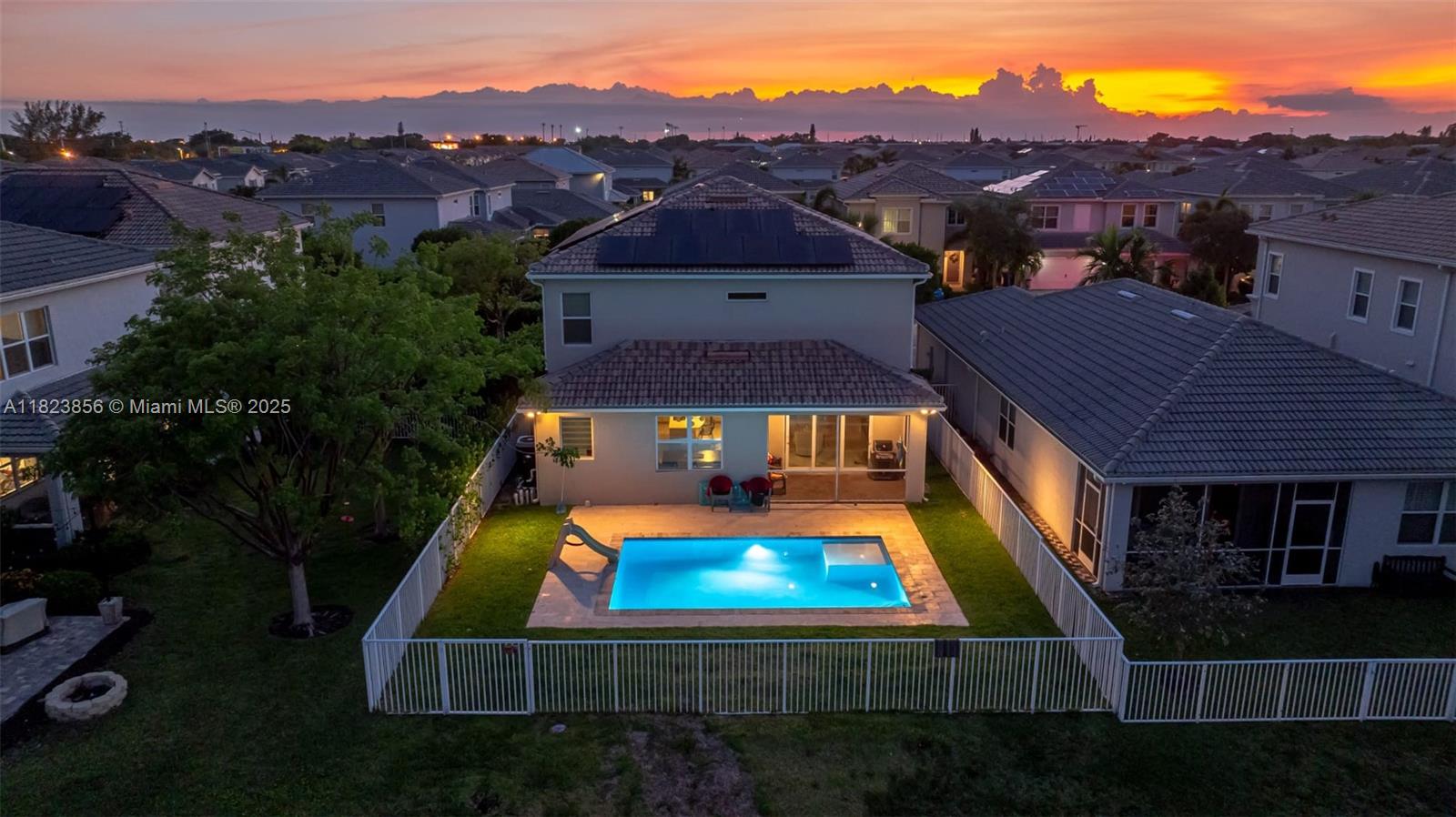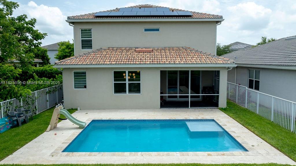Lakefront luxury meets modern living in this stunning home featuring a brand-new heated pool completed in February 2025. Save on energy with solar panels installed in 2024. Located in a gated community with security cameras, enjoy access to a beautiful clubhouse with gym and resort-style amenities. The chef’s kitchen boasts quartz countertops and two walk-in pantries. All upstairs bathrooms feature granite counters. The spacious laundry room includes a sink and basin. The garage is upgraded with non-slip floors, bike hooks, and a built-in storage cabinet. This home blends style, comfort, and function—perfect for entertaining or relaxing by the water. Don’t miss it! 3-D interactive map of the property in the URL section at bottom of listing