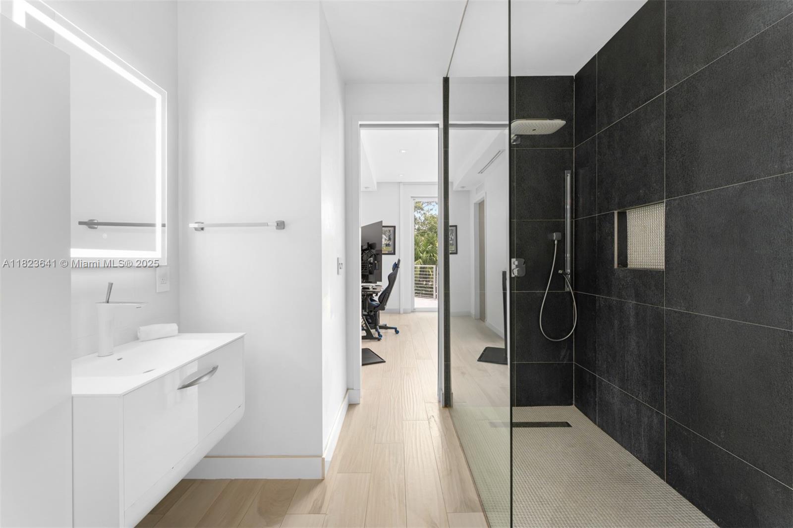 Located in the heart of Pinecrest, this gated modern estate offers luxury, privacy, and a family-friendly layout. With 6 bedrooms, 5 baths, a media room, office, and a 3-car garage with EV charging, this architecturally striking home is designed to impress. Volume ceilings and floor-to-ceiling windows flood the space with natural light. The sleek kitchen features Italian cabinetry, quartz countertops, and top-tier appliances. A floating wood staircase leads to a loft and a lavish primary suite with a private balcony. Enjoy resort-style outdoor living with a summer kitchen, pool, and spacious terrace. Minutes from top-rated schools.