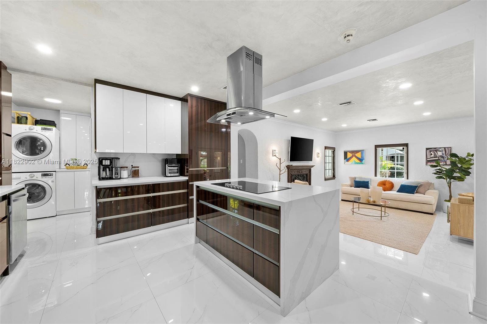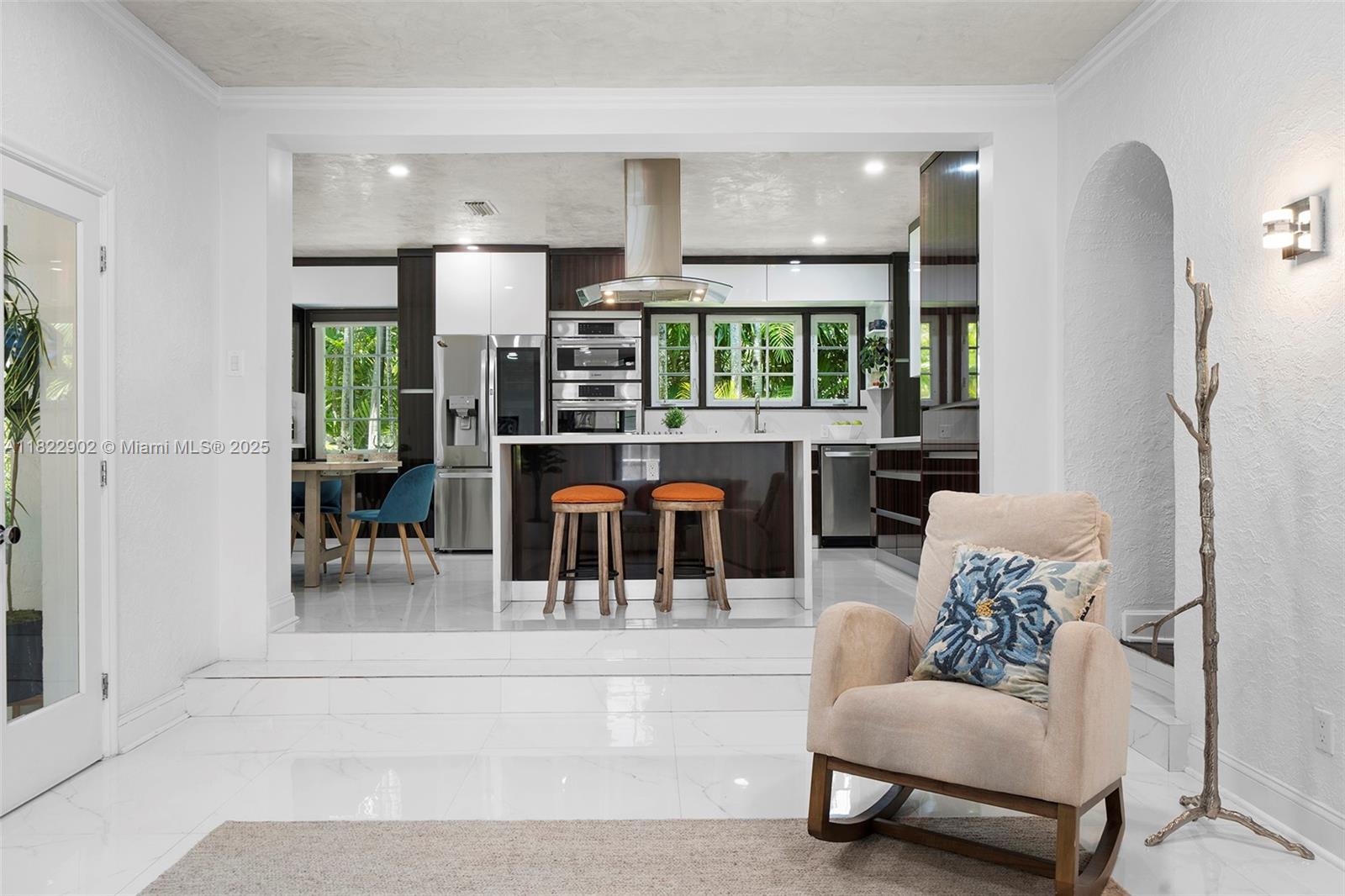 Bienvenido a Casa Granada — a fully renovated Spanish-style home in the sought-after Granada neighborhood of Coral Gables, minutes from the Country Club, Miracle Mile, and Giralda Row. Bright interiors feature an Italian kitchen with island, Silestone countertops, and premium appliances, plus dining room, enclosed porch, office, and den. The primary suite offers a walk-in closet and spa bath with oversized shower and dual sinks. Finishes include Carrara marble tile, hardwood floors, impact windows, new roof, and custom closets. Two private patios allow for both lively family gatherings and peaceful retreats under the Coral Gables sky.