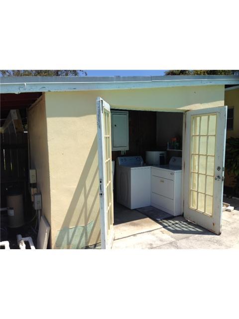 BANK ON THE MARKET - CALL LISTING OFFICE TO SHOW. Fantastic location close to Federal Hwy, beaches & shopping. Florida Charmer with circular driveway and one car carport. Open kitchen to living area. Family room has door leading to a roofed, screened in patio. Vaulted ceilings. New breaker electrical panel. Spacious yard with privacy fence and in ground pool. Separate building with water and electricity (has washer and dryer). Great opportunity to be in a fantastic neighborhood. Sold as-is.